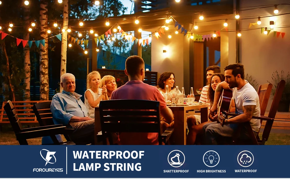Item: LED String lights(100ft Outdoor Garland Lights 220V G40 Plastic Bulb LED Tent Fairy Patio String Light Wedding Garden Party Decoration)