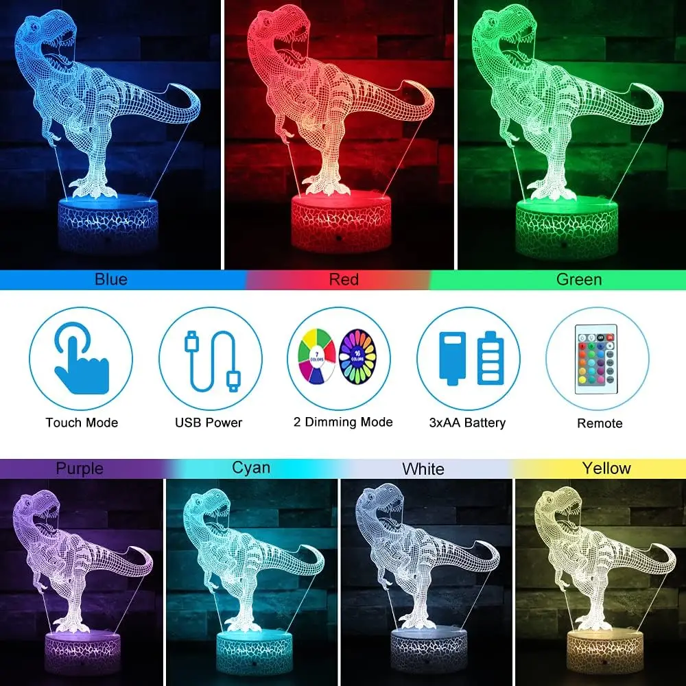 3D Cute Dinosaur Night Light Kids LED Dino Lamp Lovely USB Acrylic Glasses Table Nightlight for Children Gift Lamp Bedroom Decor