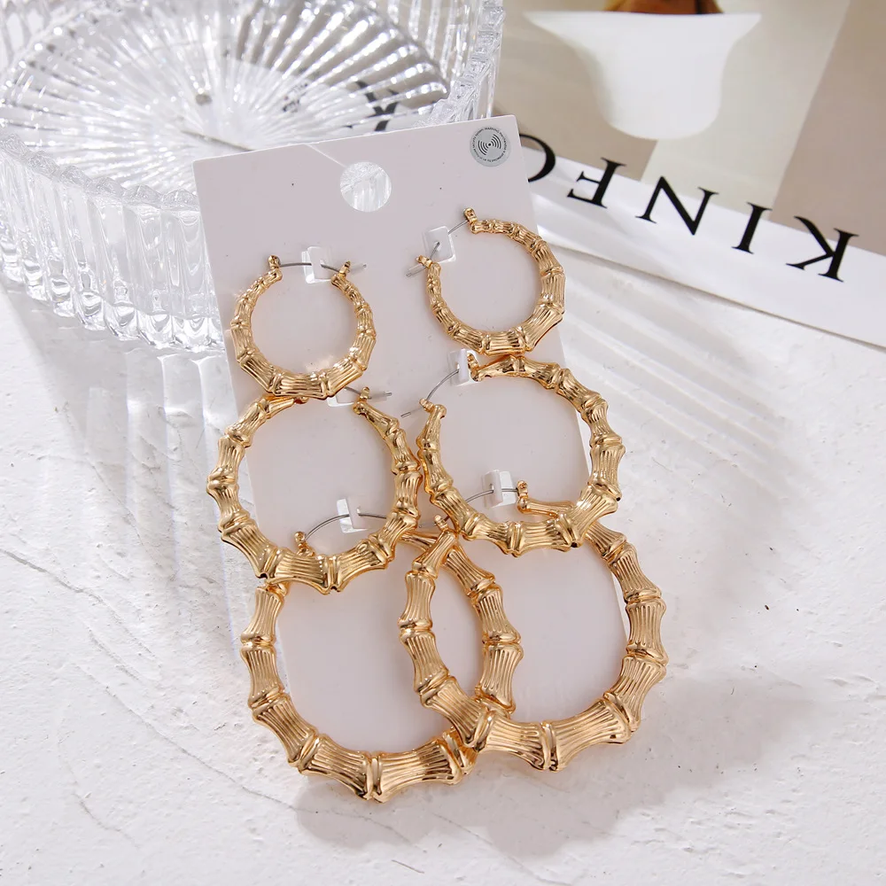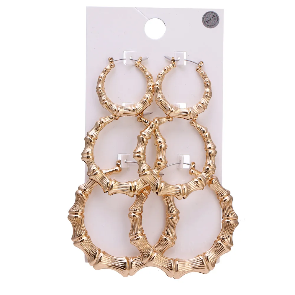 3pairs Set Hoop Earrings Set Big Geometry Round Circle Earring for Women Girls Gold Color Metal Hyperbole Party Jewelry