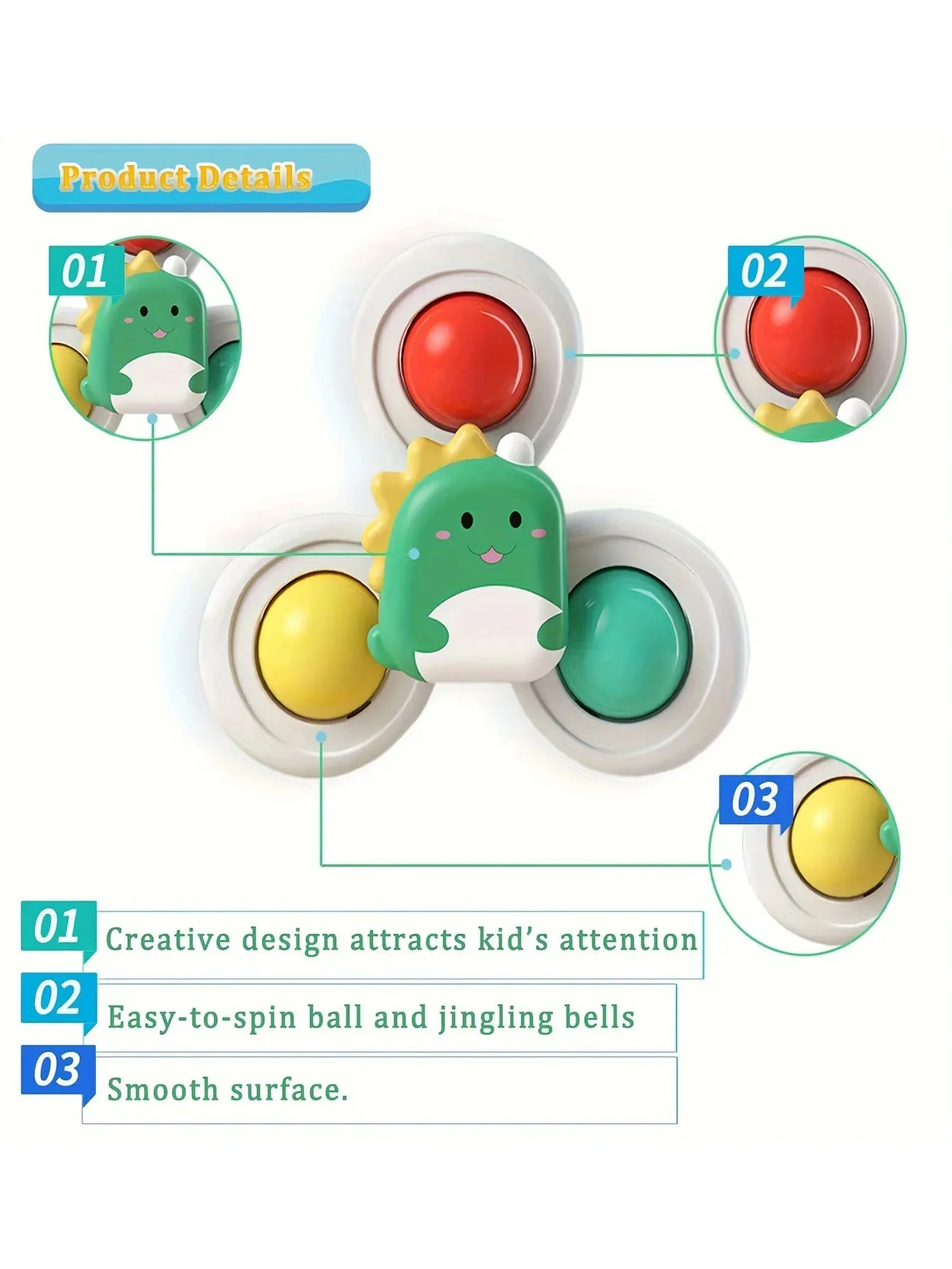 3pcs of Set 0-3 years old Baby Bathroom Spinning Toys,Can be sucked on the Table, Bathroom Wall, glass,Car Windows Soothing Toys