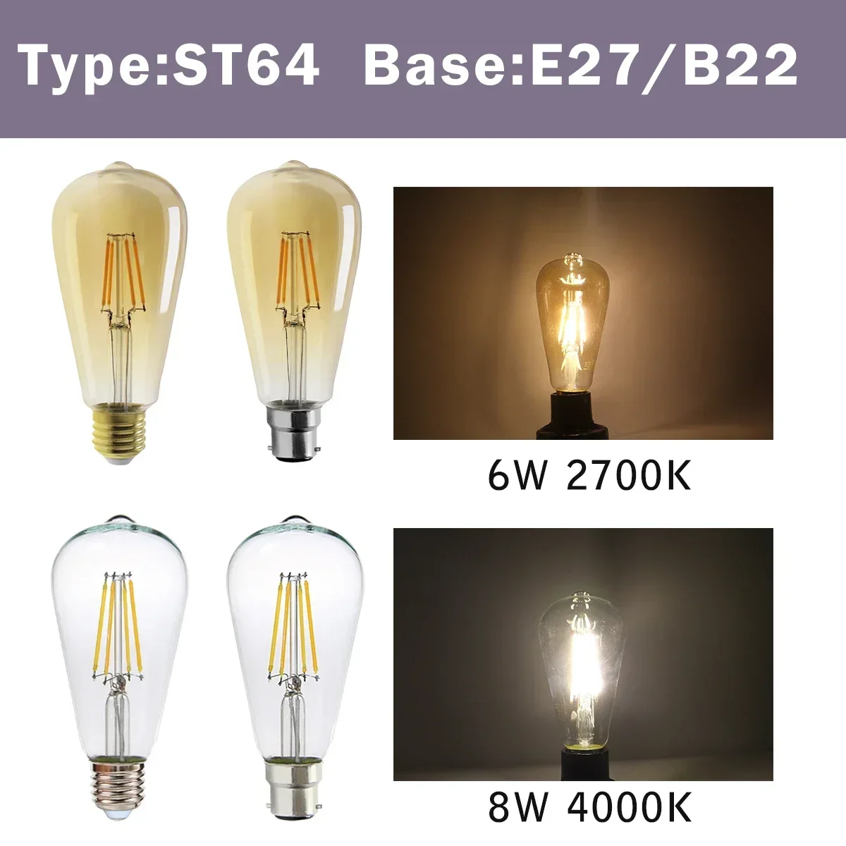 3pcs Retro Led Light Bulb E27 B22 E14 C35 A60 ST64 AC220-240V Edison Filament Bulb Vintage Warm Glass Lamp Lighting Indoor light
