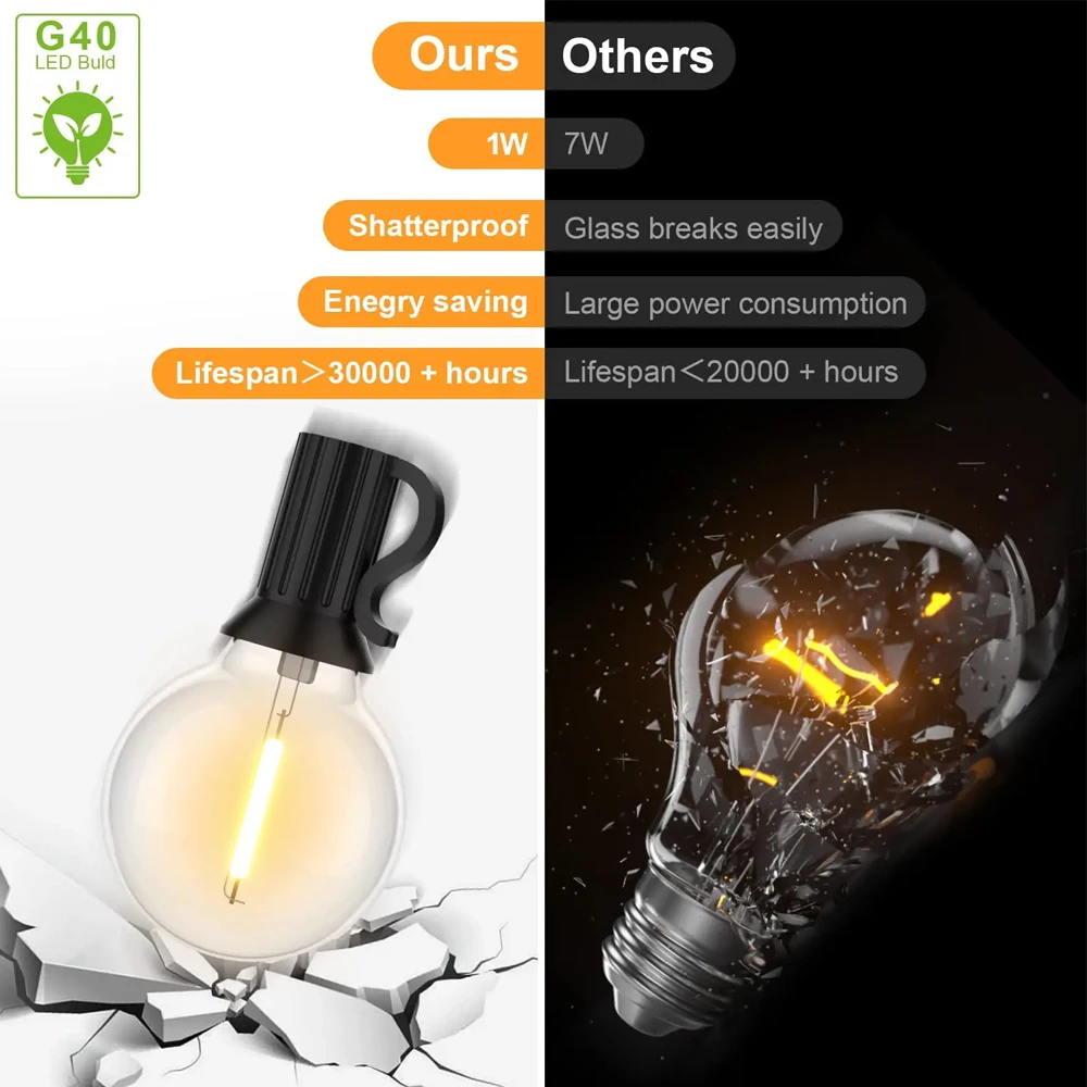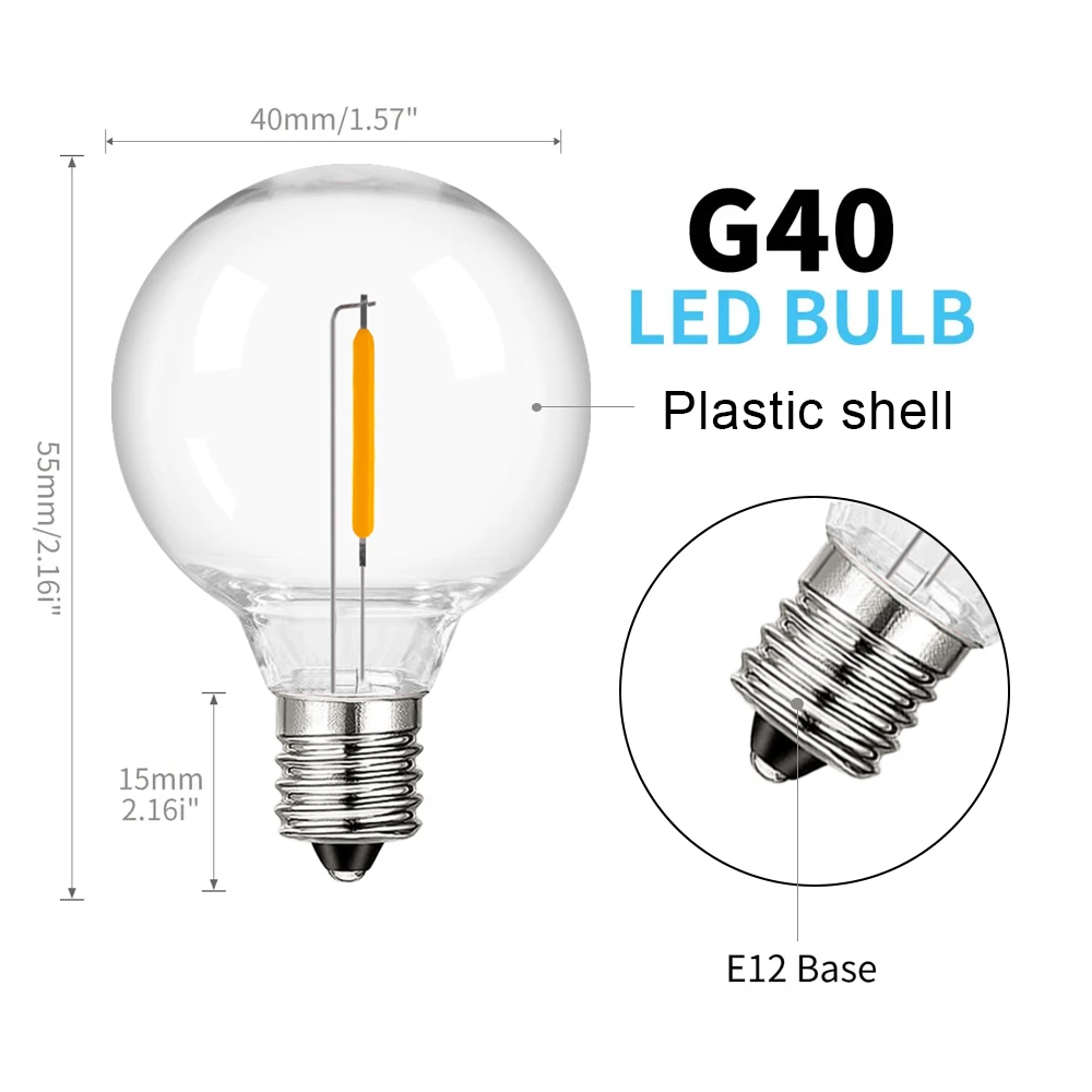 • Bulb model: G40 Led filament light bulb