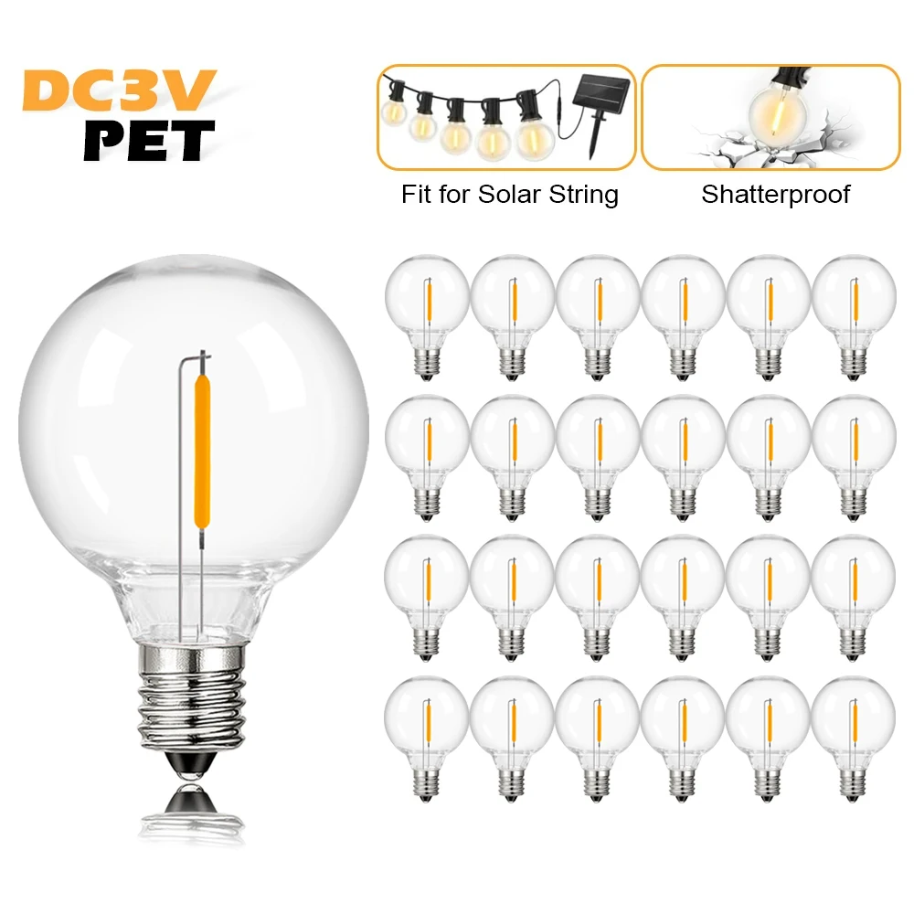 3V G40 Led Light Bulbs Plastic Shatterproof E12 Base Warm White 2700K Low Voltage Replacement Globe Bulb For Solar String Light