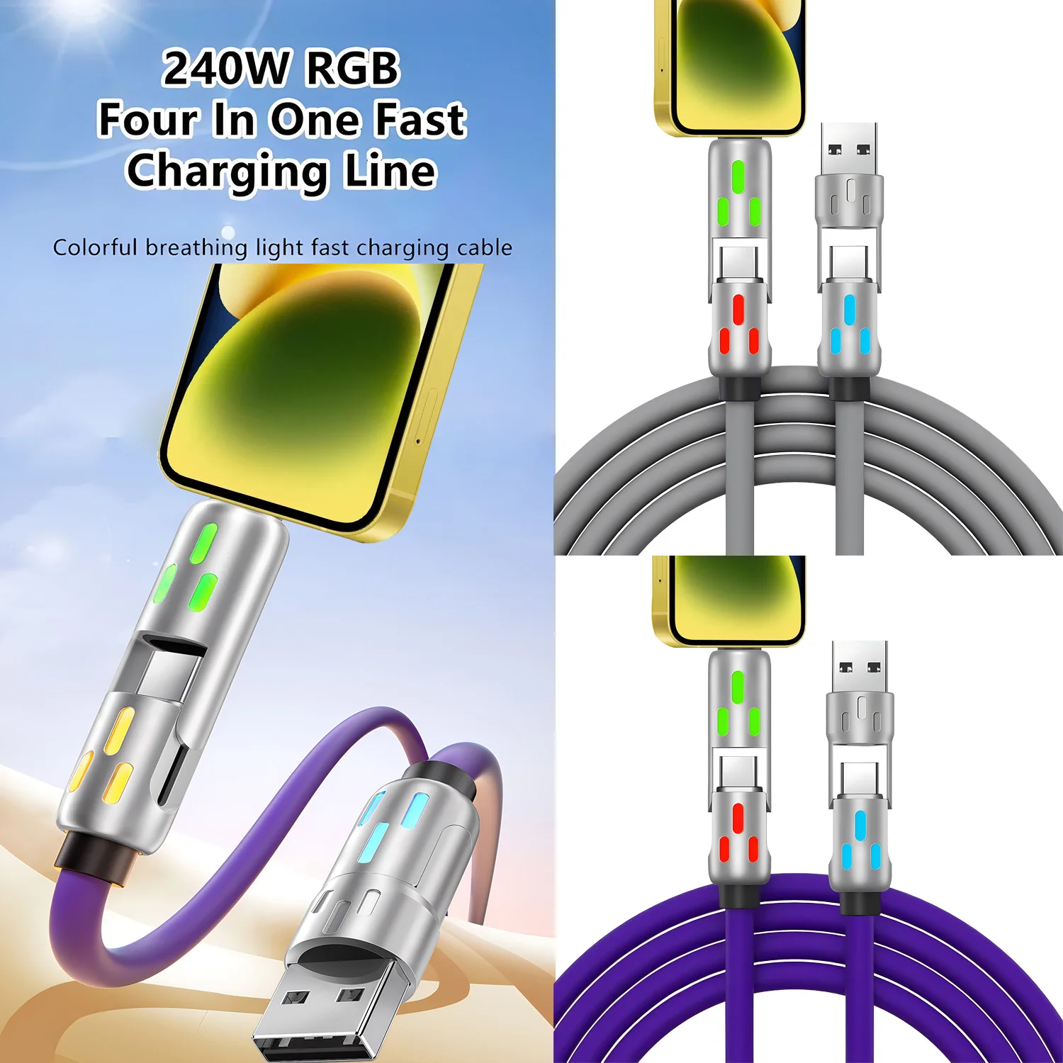 4 in 1 Multi Interface Charger Rotating Elbow USB to Type-C 1M Mobile Phone 240W Fast Charging Silicone Cable Data Transfer