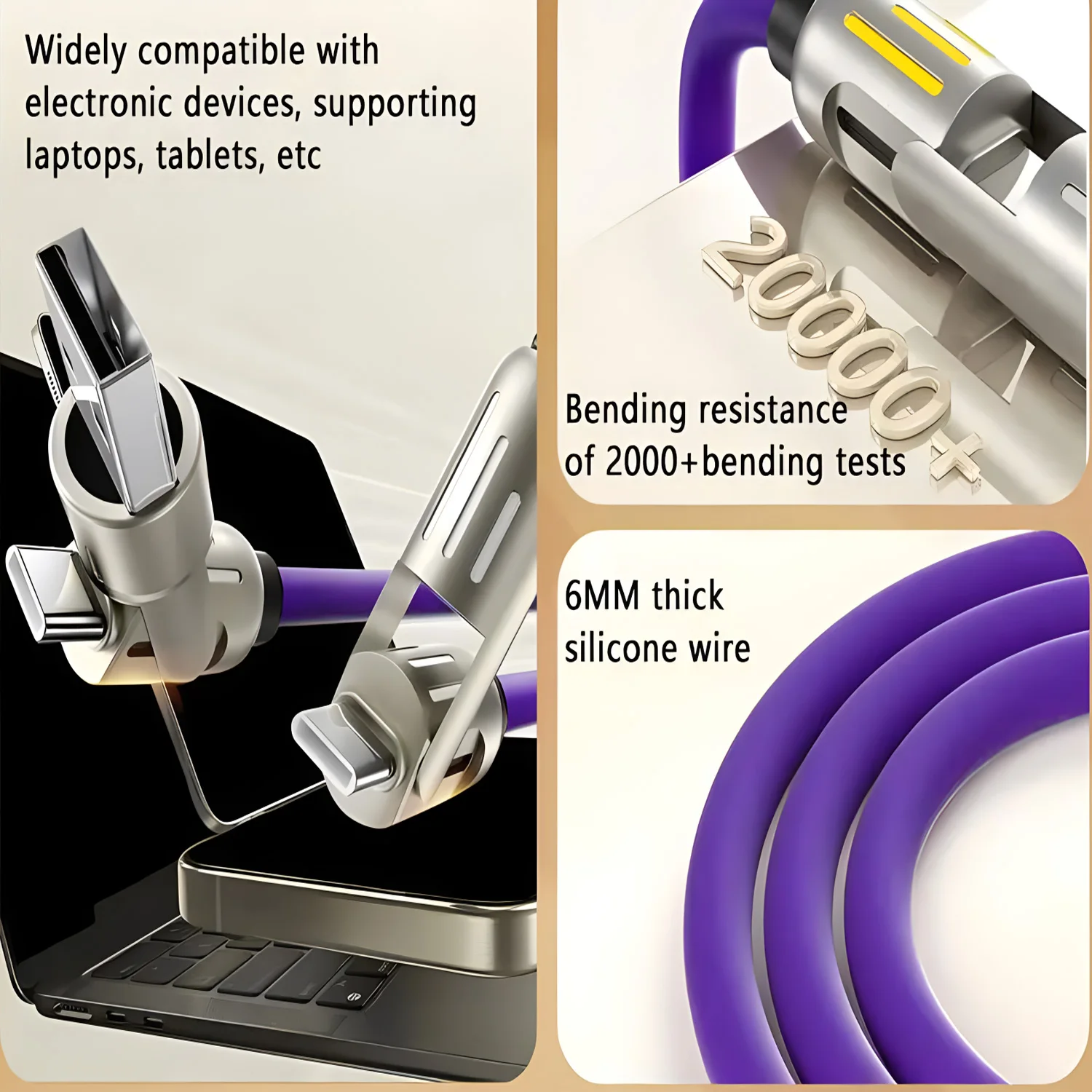 4. **Optimal Length for Convenience**: At 1 meter in length, the Quad-in-One Liquid Silicone Cable is perfectly sized for everyday use, allowing you to easily reach your charging port without the clutter of excessive cable lengths.