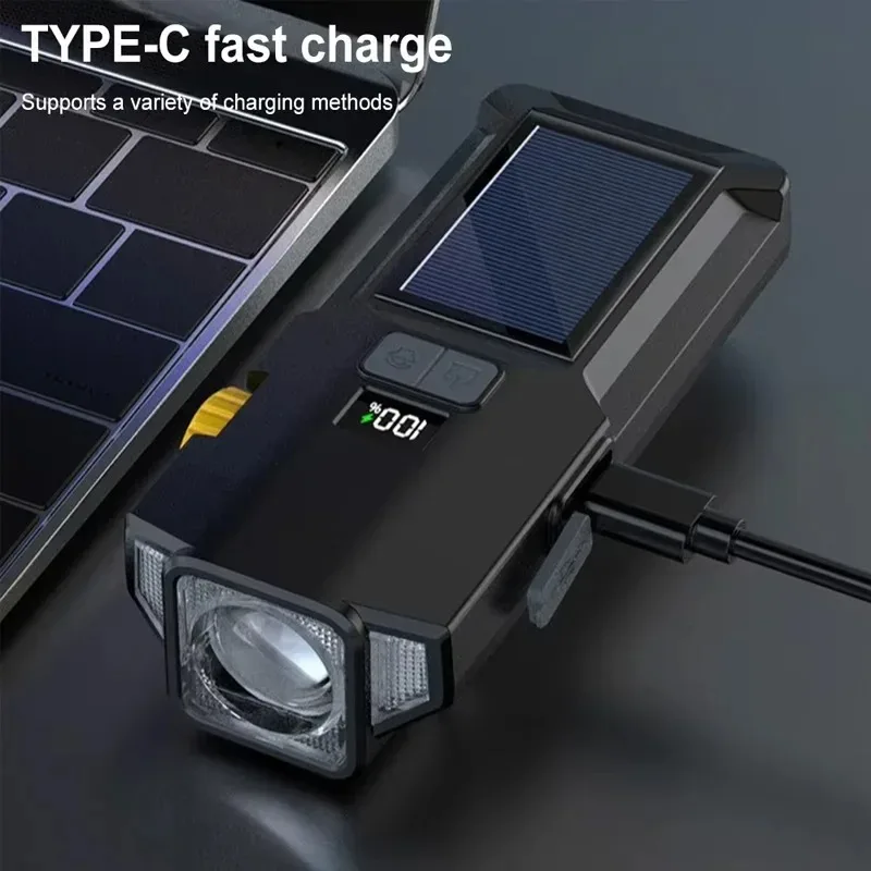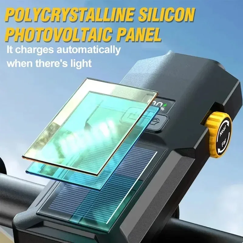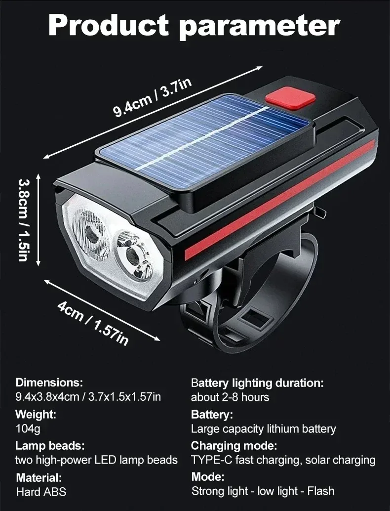 2.Hybrid Charging Options: Featuring Type-C USB and solar charging capabilities, this bicycle headlamp offers versatile and convenient recharging options, ensuring you’re never left in the dark.