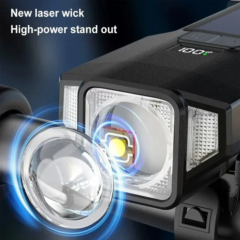 Bicycle Zoom Light 4000mAh Long Endurance Bike LED Front Light COB Side Warning Flashlight Solar Rechargeable Cycling Headlight
