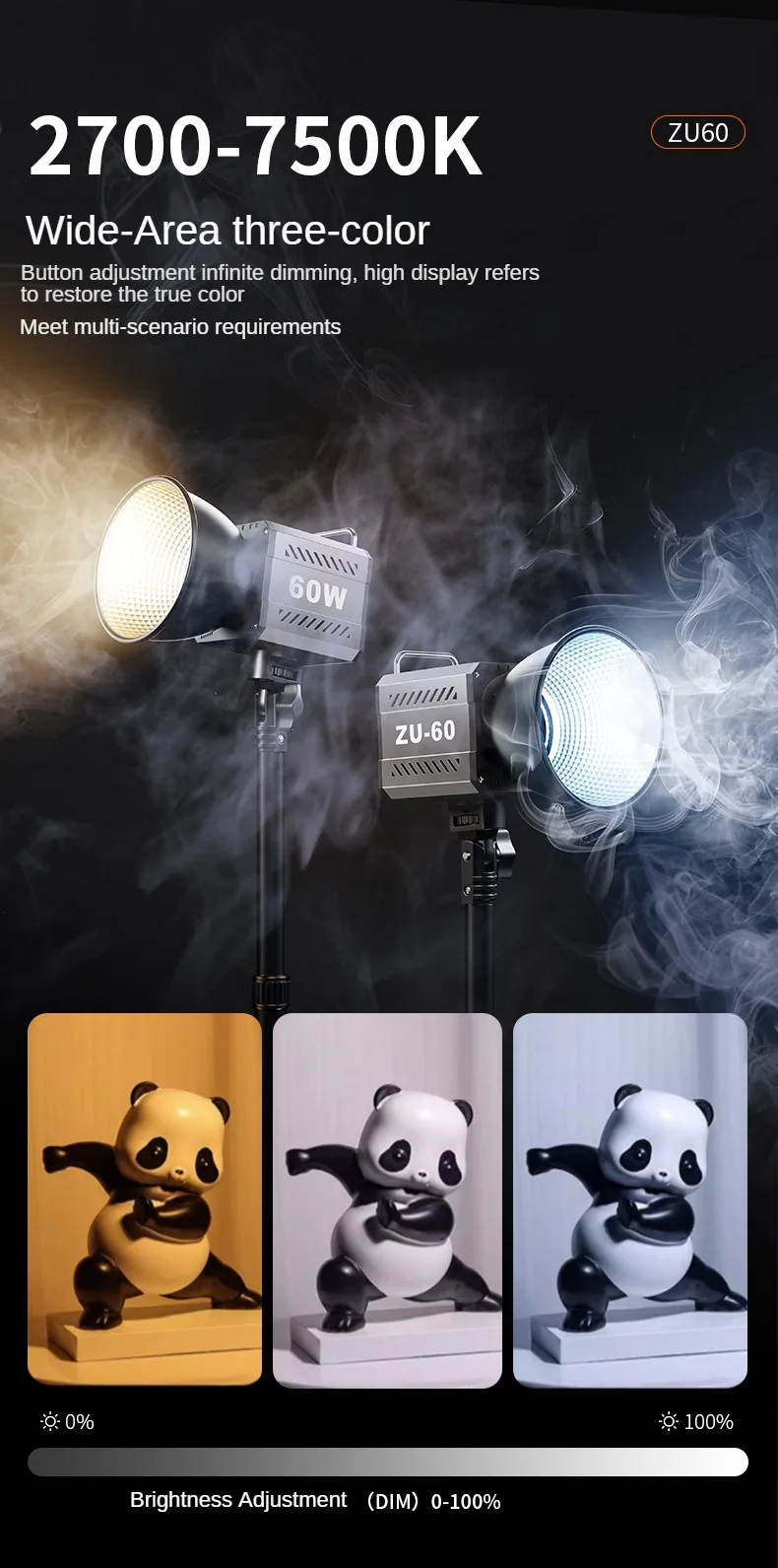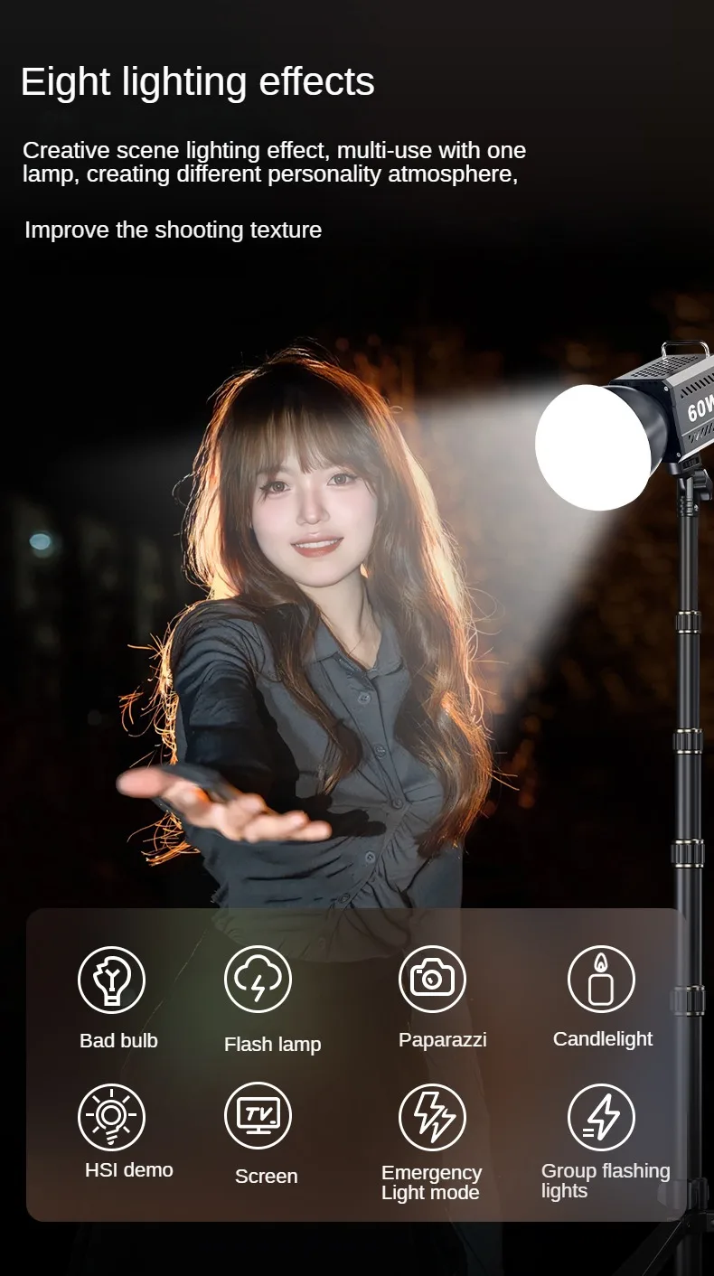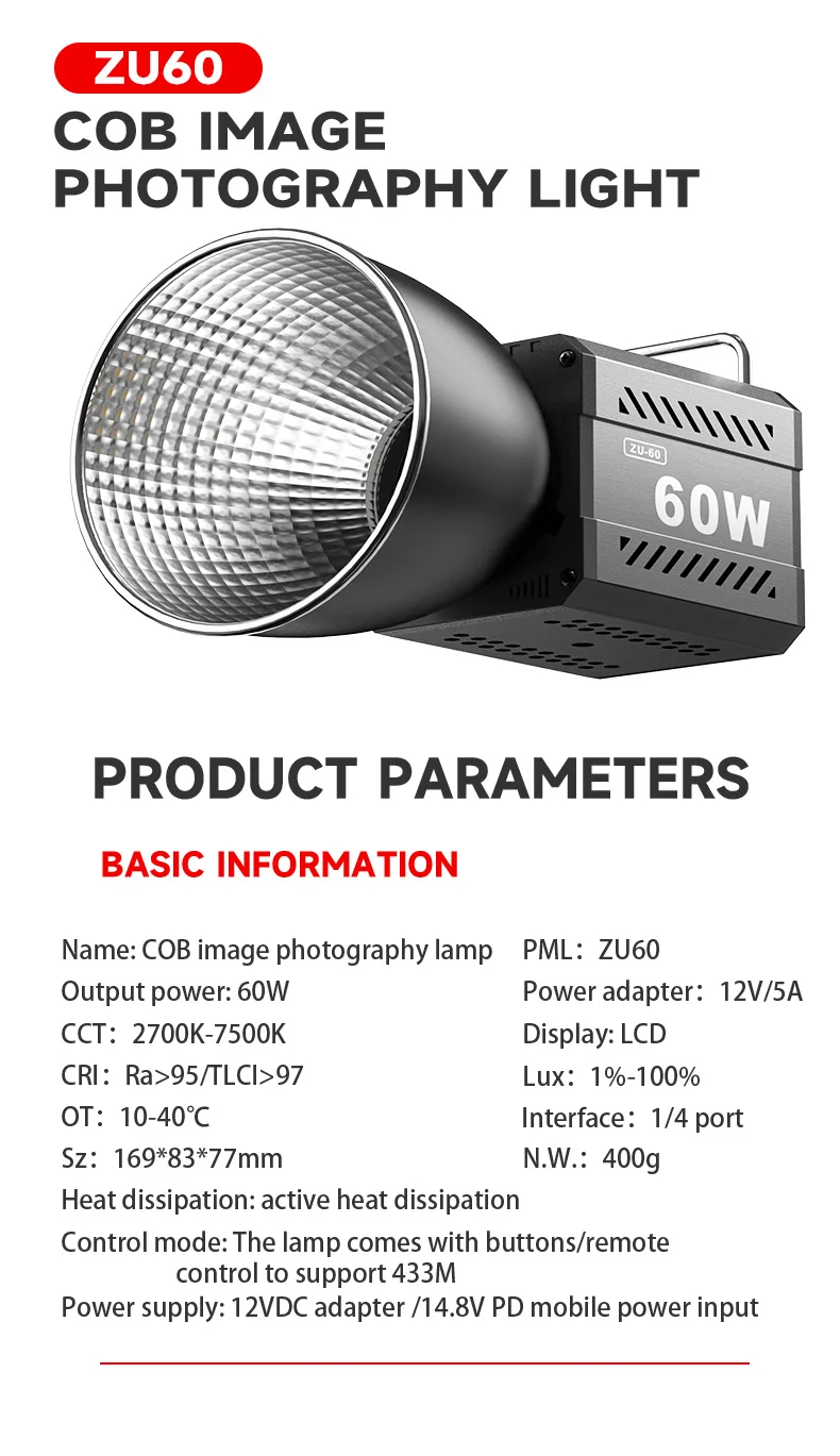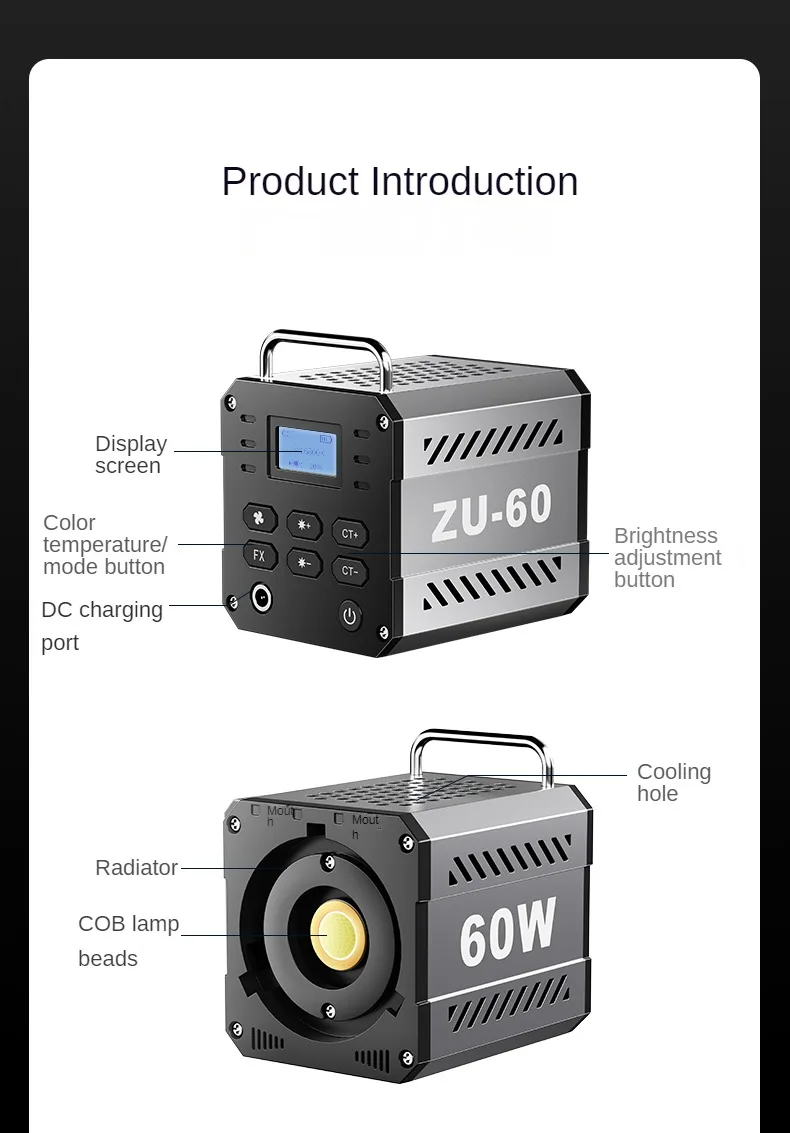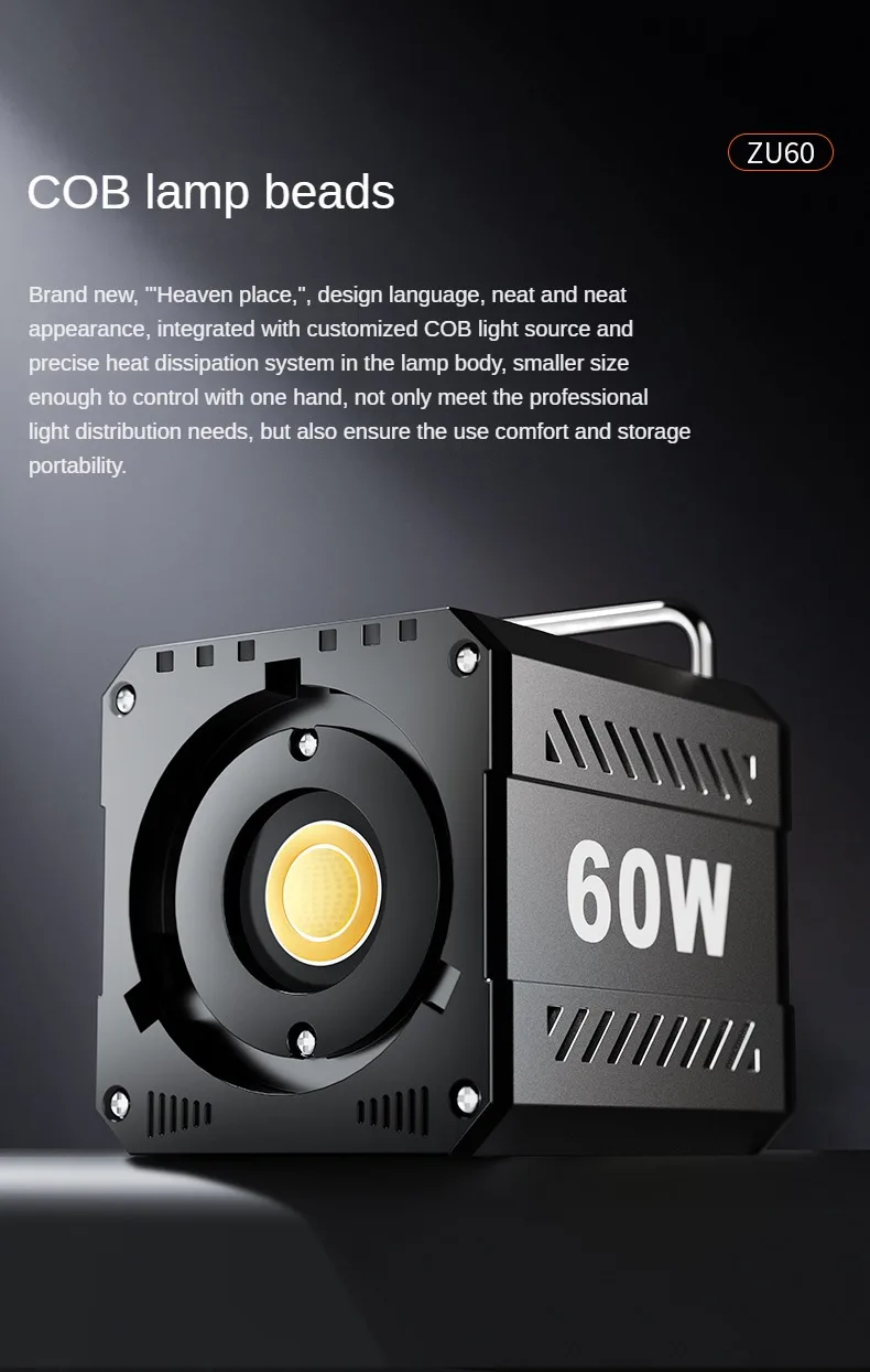 60W COB Video Dimmable Light 2700-7500K Photographic LED Light for Photo Studio Film Camera Shooting Livstreaming