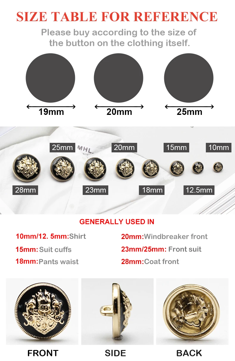6pcs 10-28 mm golden gold metal buttons garment coat sewing accessories buttons for clothing crafts Black point oil button