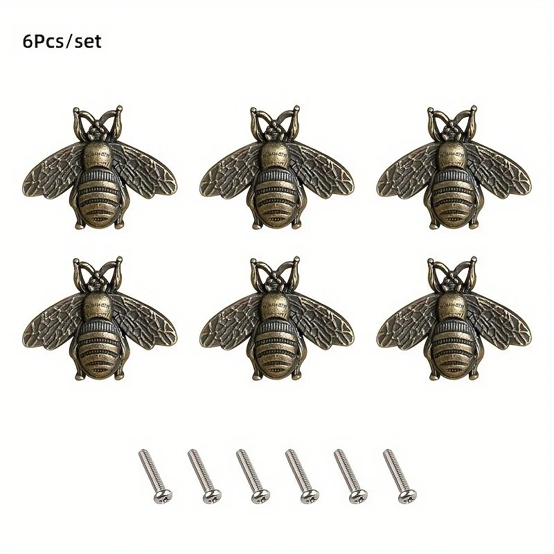 Vintage Antique Polished 6pcs Zinc Alloy Metal Bee Cabinet Handles – Retro Beehive Style Bar-Shape Drawer Pulls for Home Decor and Kitchen Cabinets