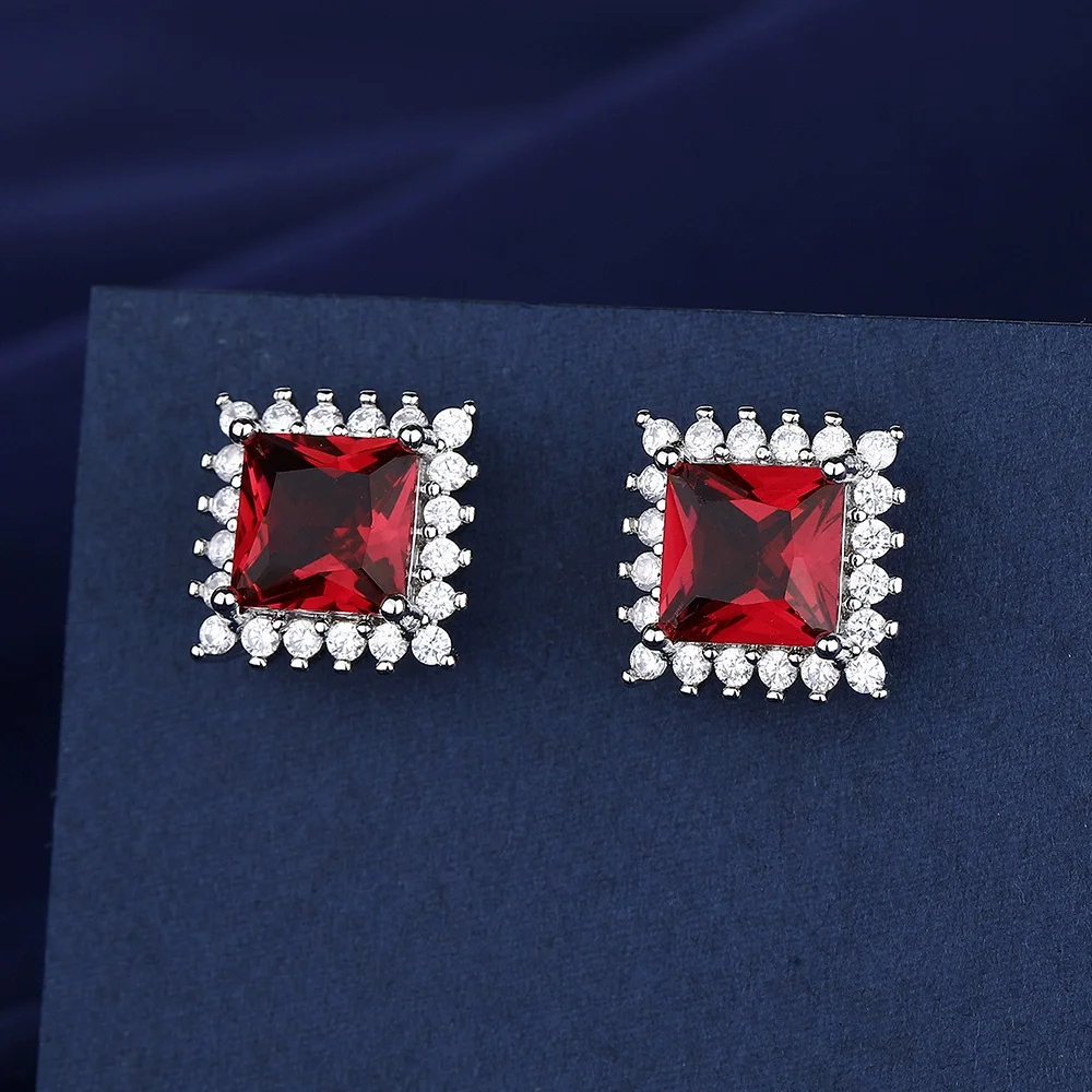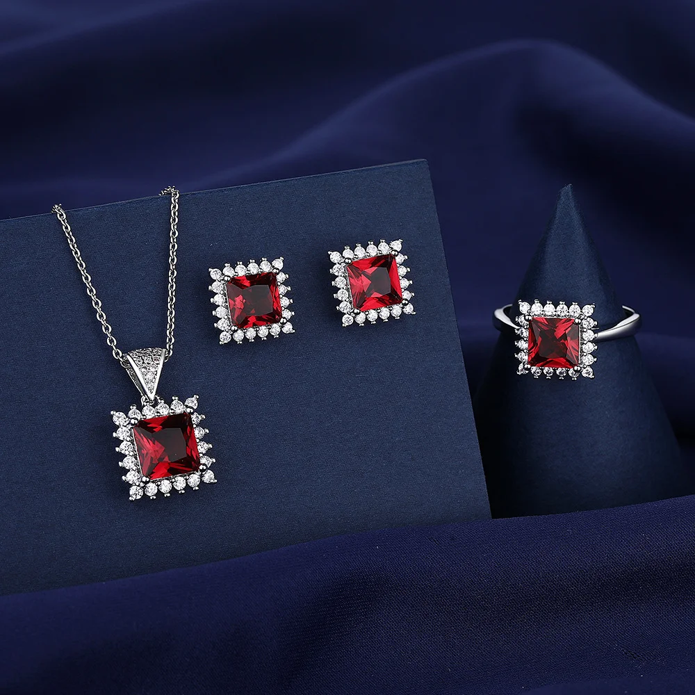 925 Sterling Silver Jewelry Set, Women’s Shining Jewelry Cubic Zirconia Red Crystal Necklace Earrings Ring Birthday Gift Jewelry