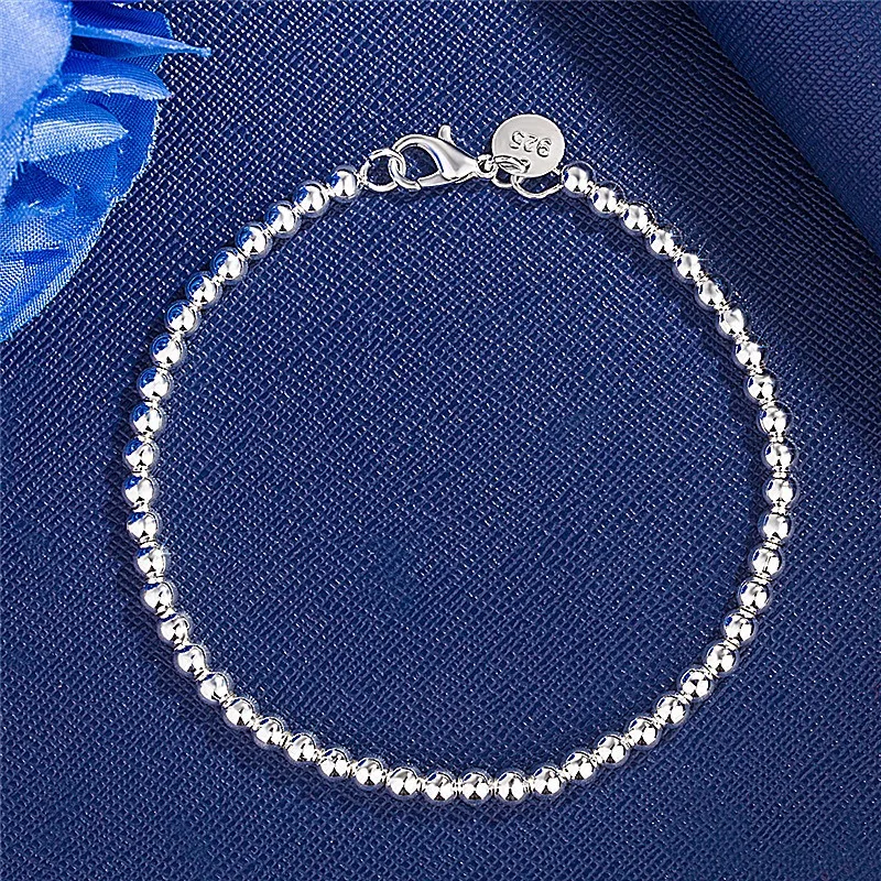 925 Sterling Silver Plated 4MM Beads Ball Chain Bracelet For Women Men Fashion Jewelry elegant Jewelry Birthday Gift for women