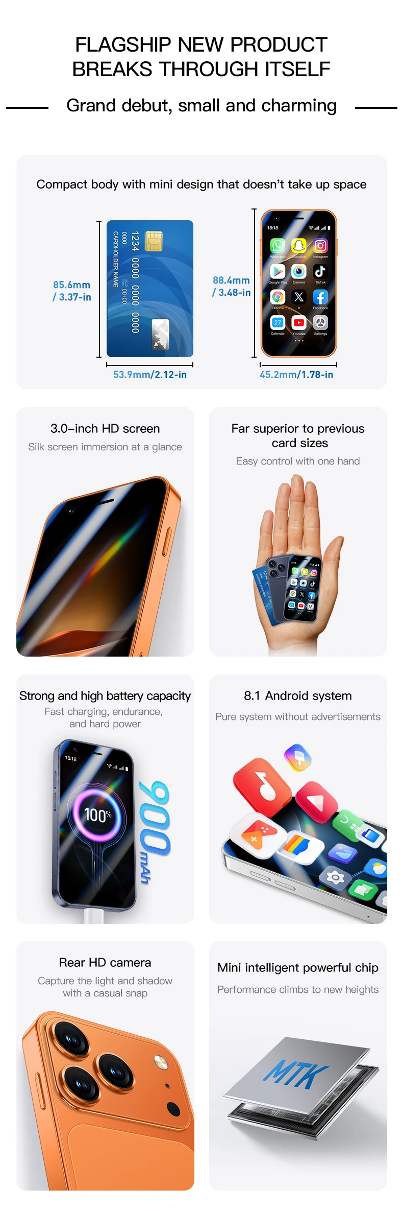 A17mini smartphone, 3.0-inch screen, Android 8.1 system, supports Play Store, dual SIM standby, and 3G network