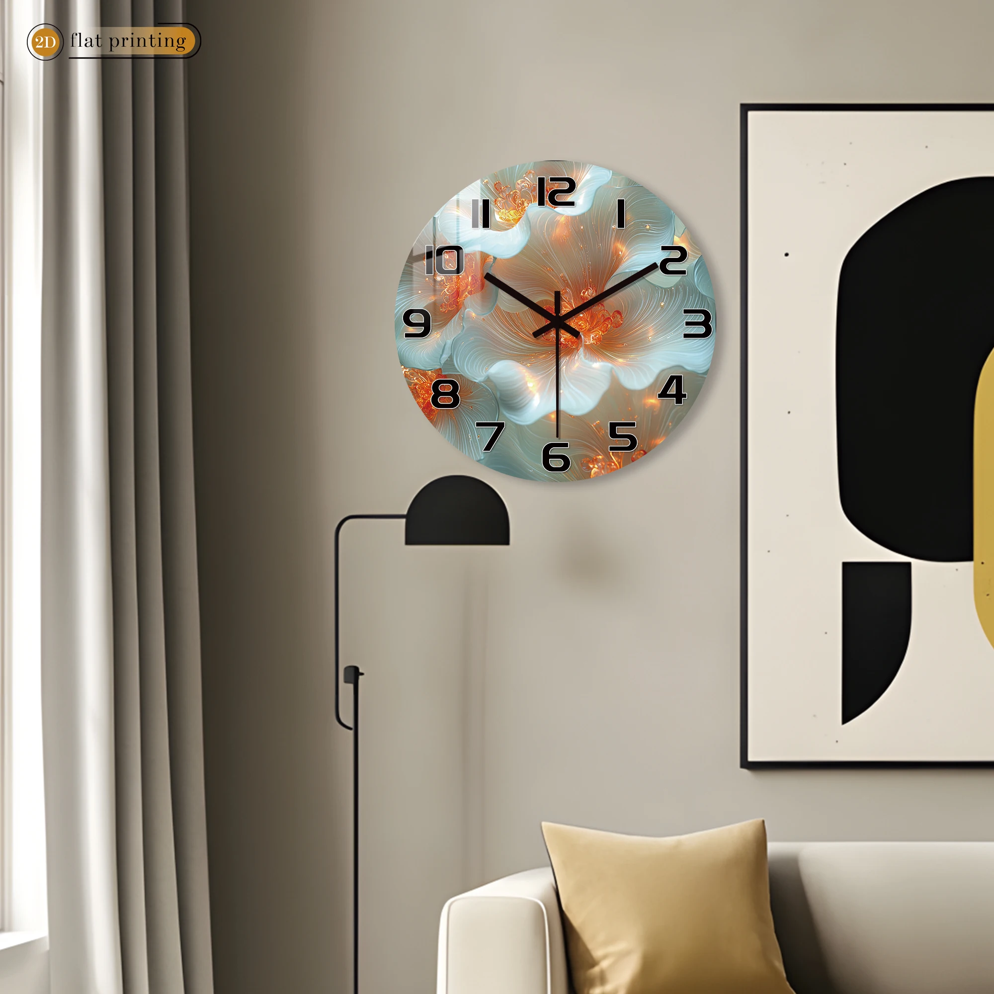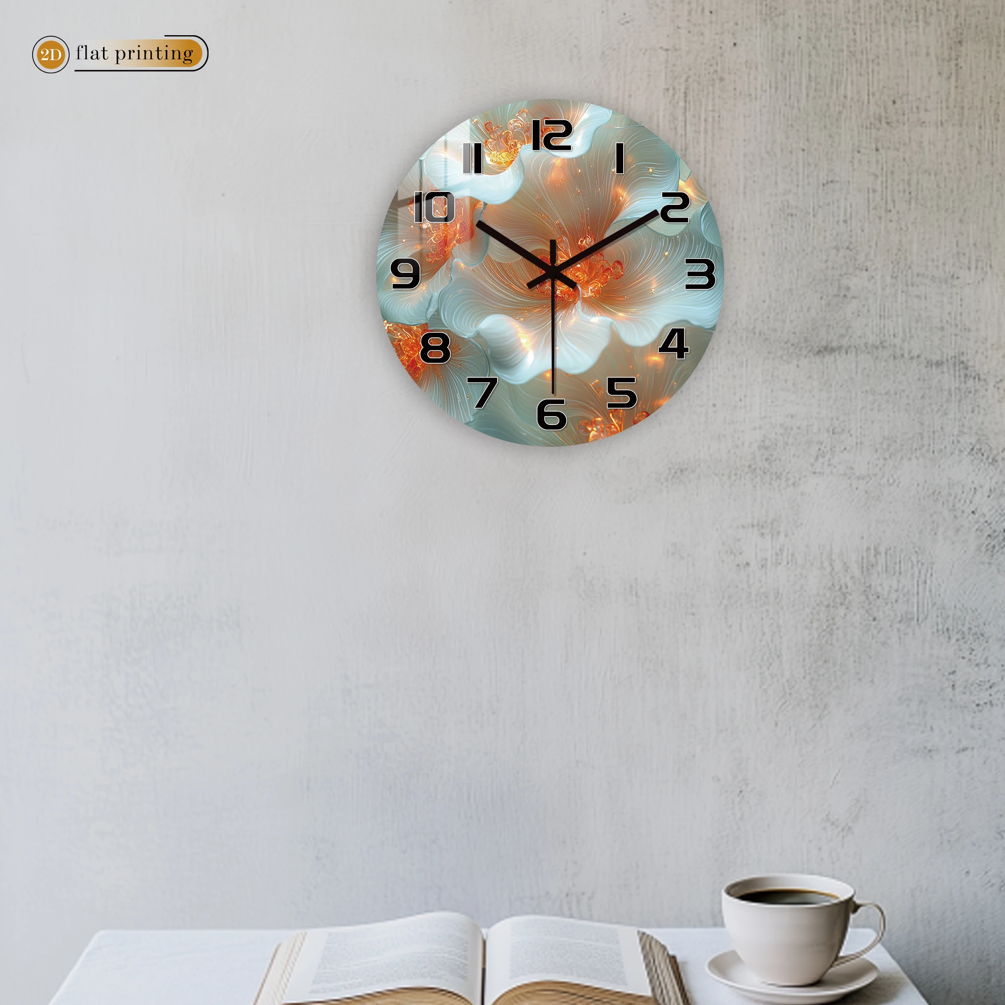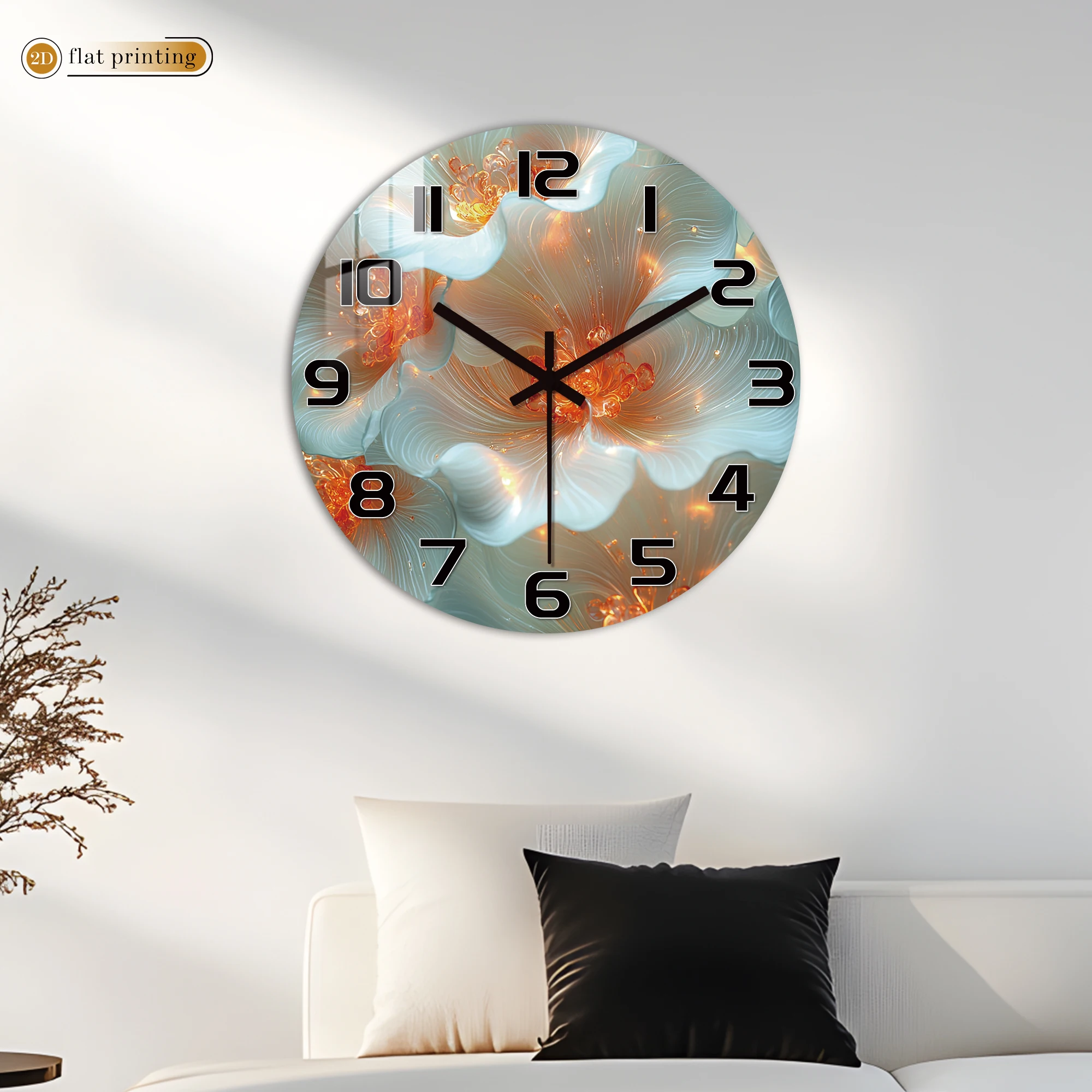 Abstract Glowing Flower Wall Clock, Warm-Tone Floral Art Decor, Luxury Botanical Home Accent Timepiece