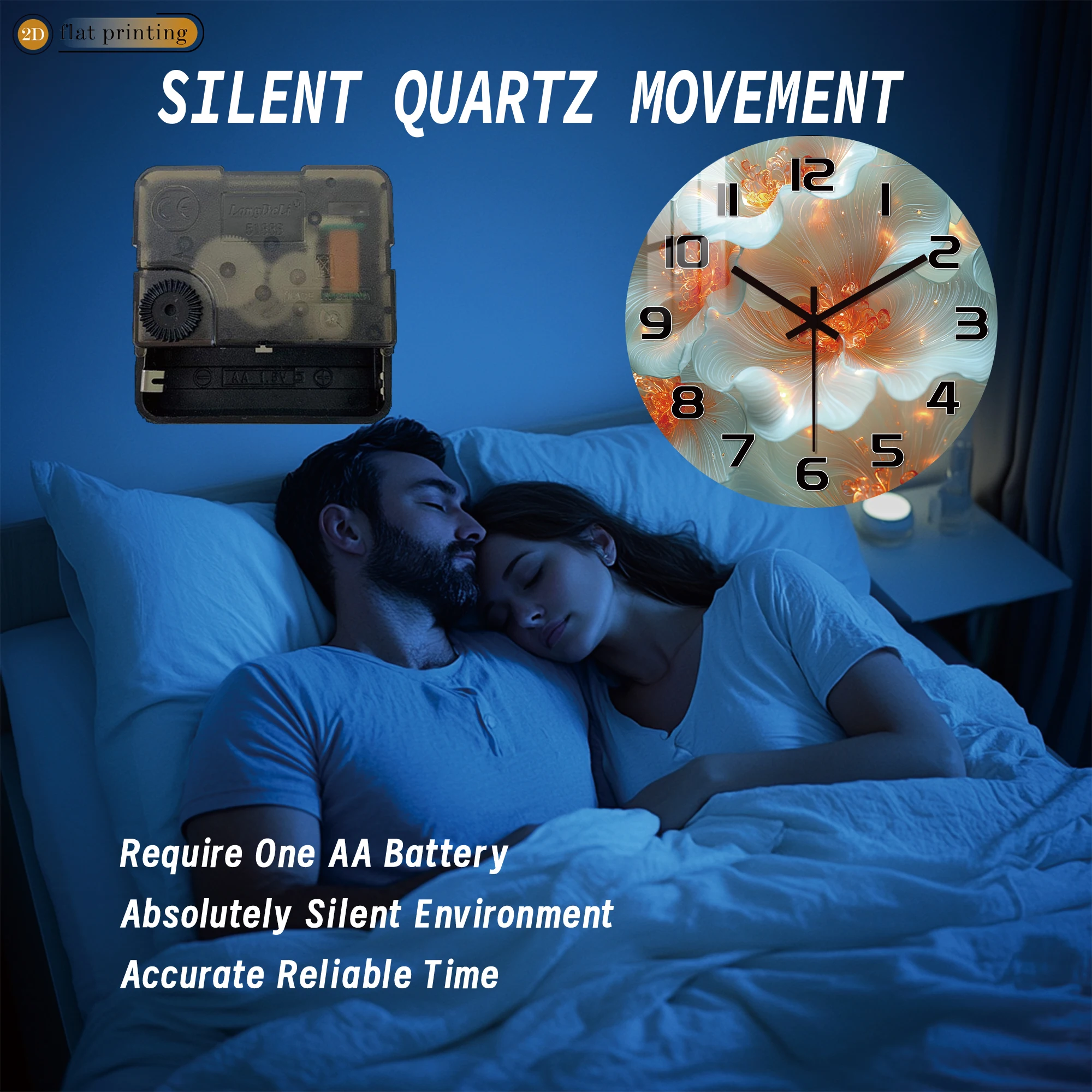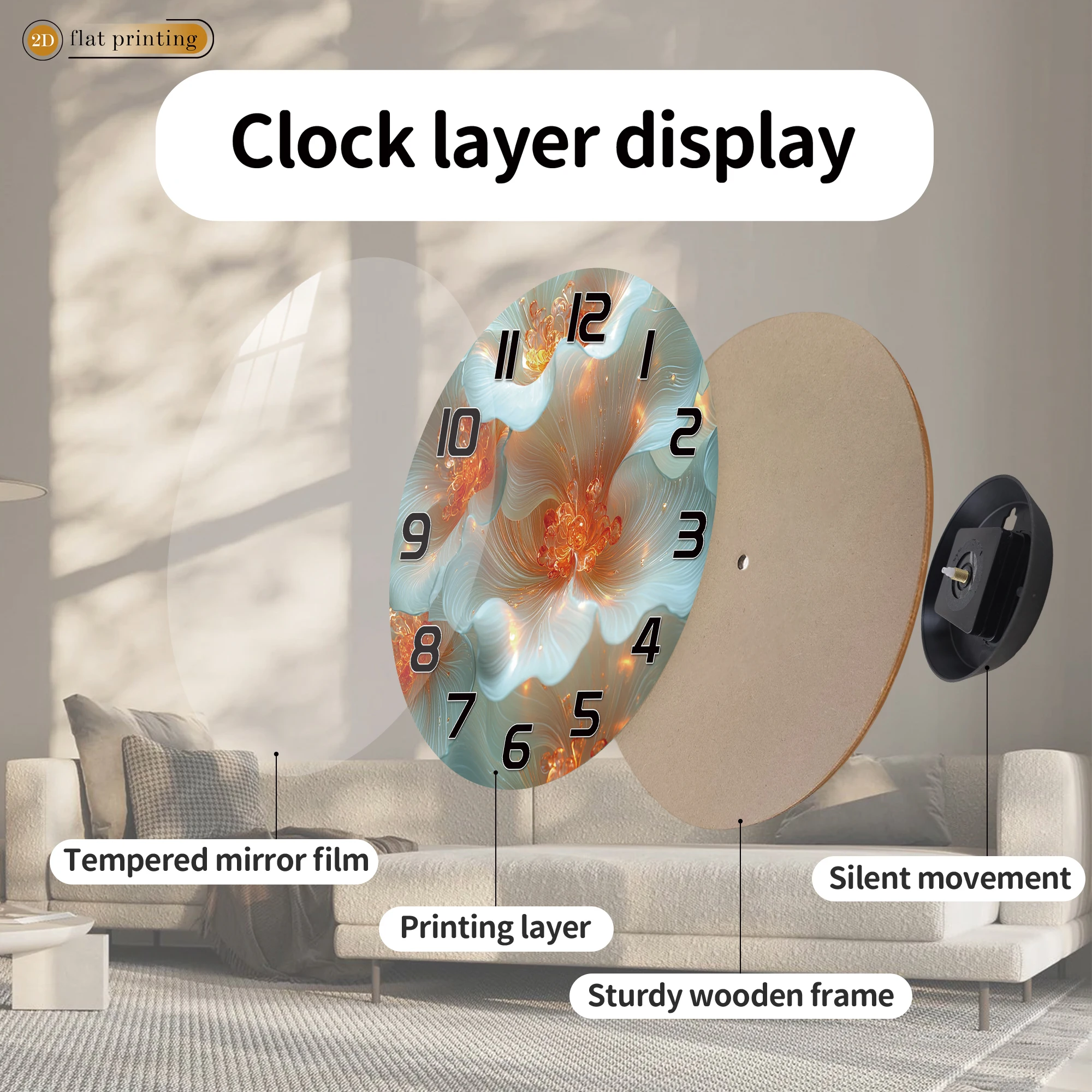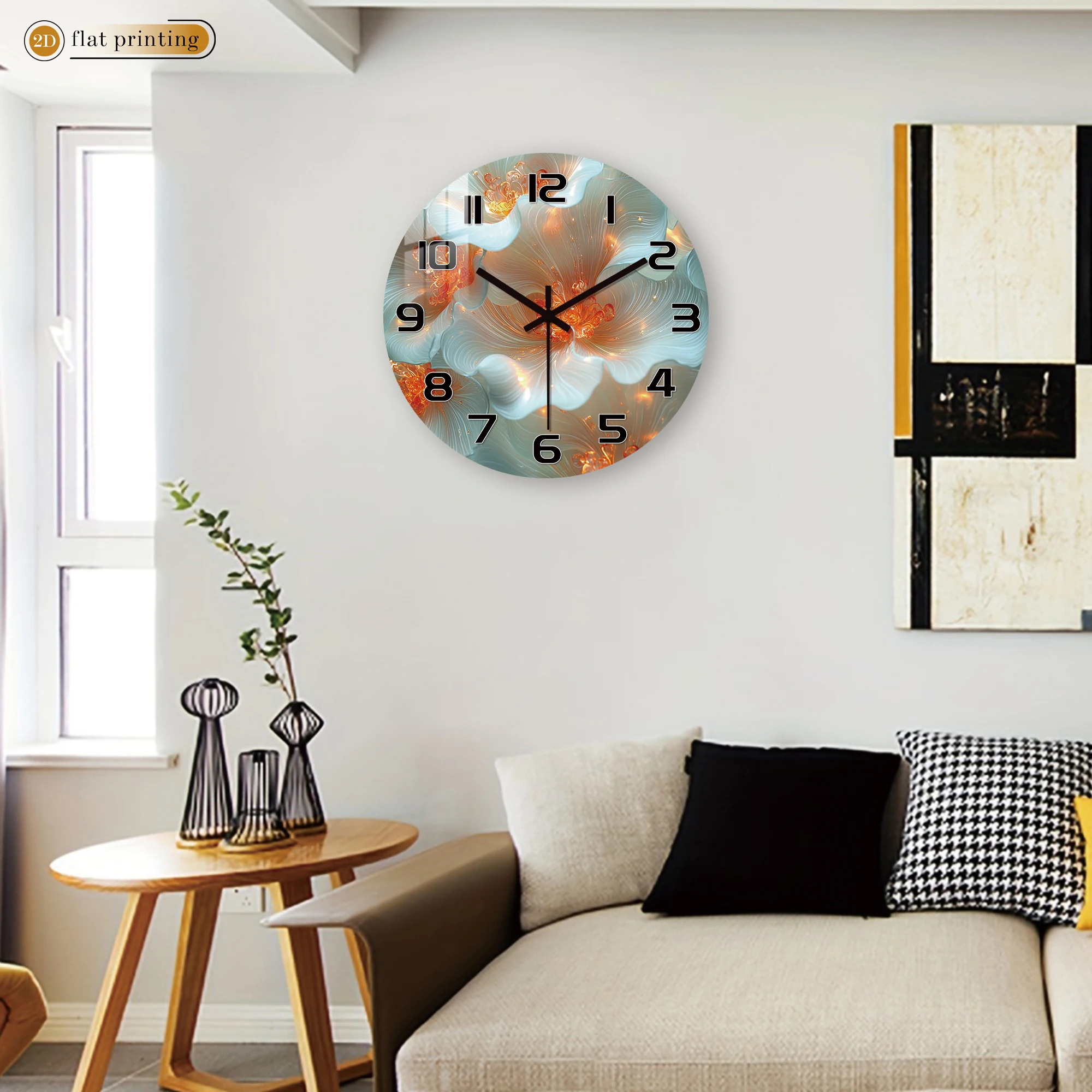 Abstract Glowing Flower Wall Clock, Warm-Tone Floral Art Decor, Luxury Botanical Home Accent Timepiece