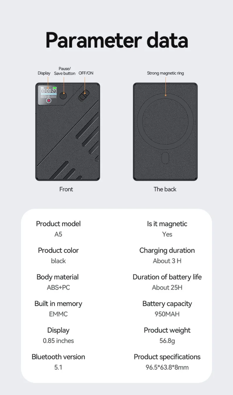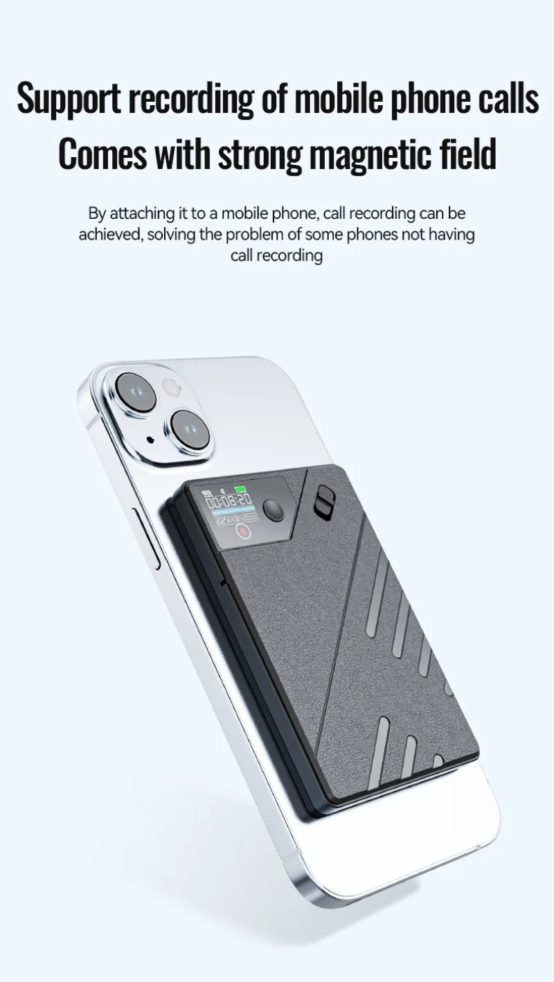 **Call Recording: Built-in strong magnetic attachment. Simply attach it to your phone to record calls, solving the problem of phones lacking call recording functionality.