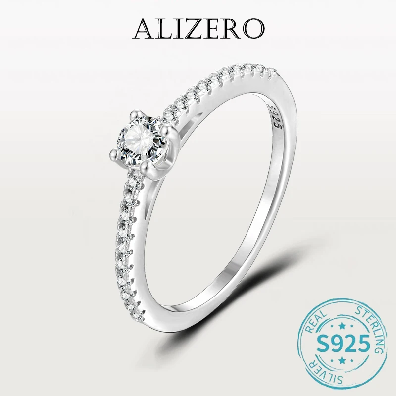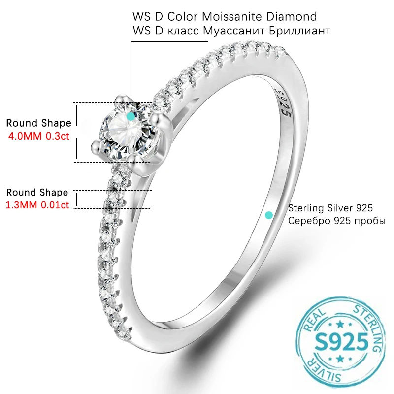 ALIZERO 0.3ct D VVS1 Moissanite Ring For Women 925 Sterling Silver Round Excellent Cut Diamond Moissanite Rings Fine Jewelry