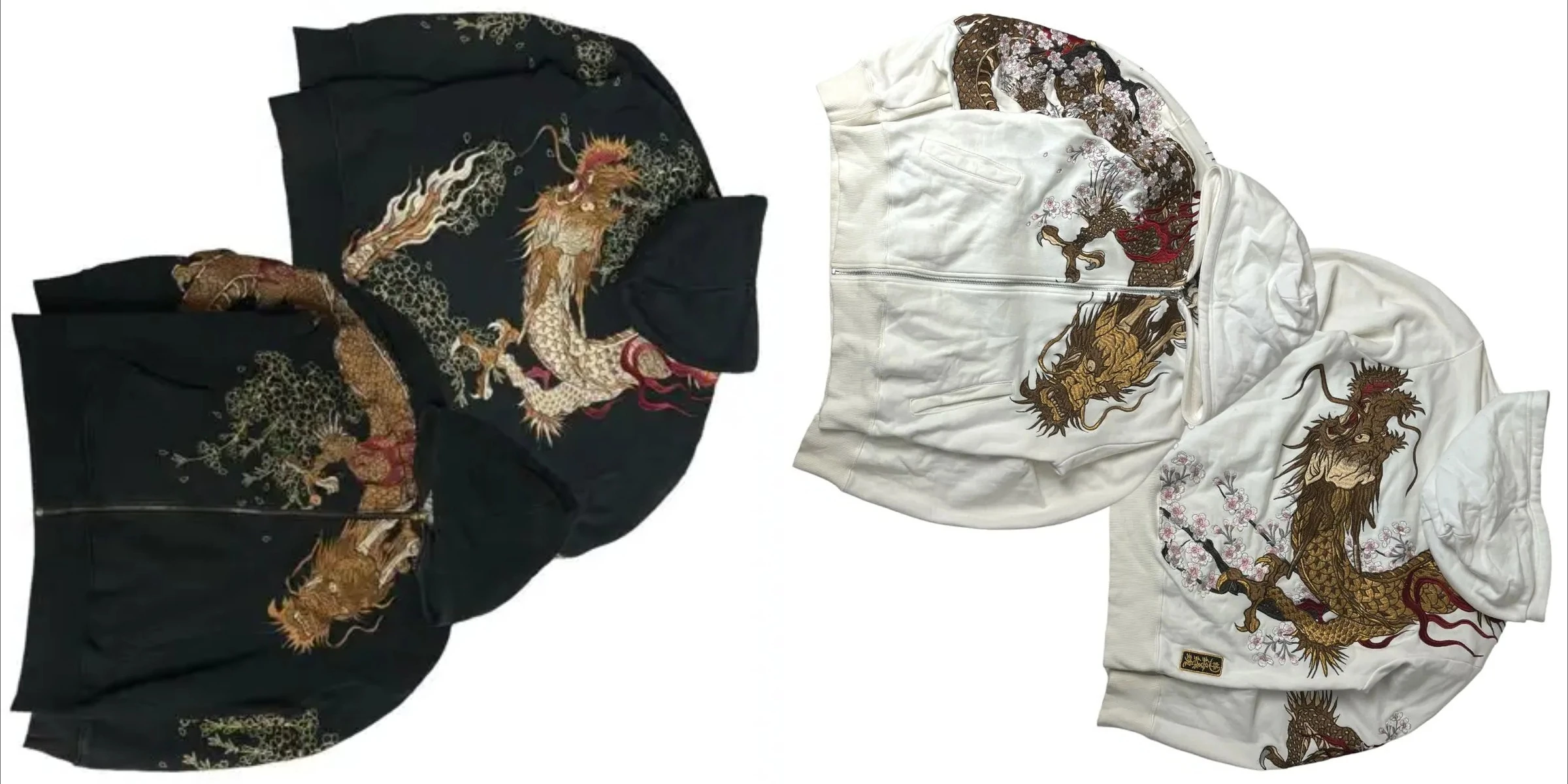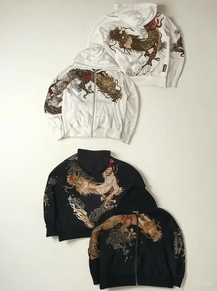 American Retro Zipper Hoodie Y2K Clothes Men Women Hip Hop Retro Embroidery Casual Oversized Hoodie Jacket Sakura Dragon Graphic