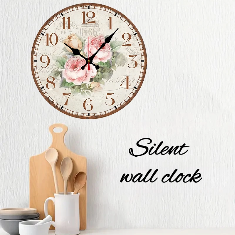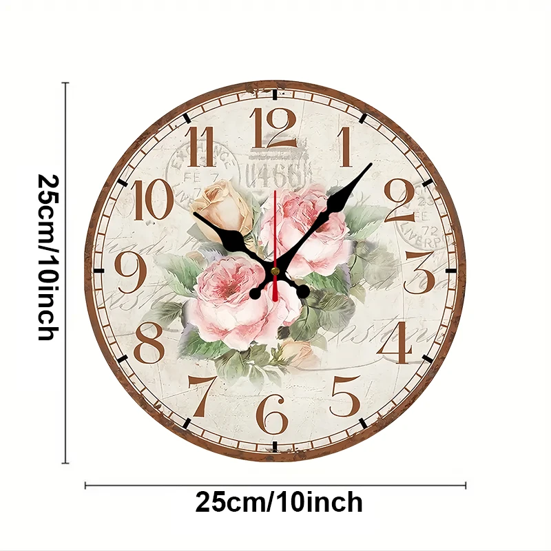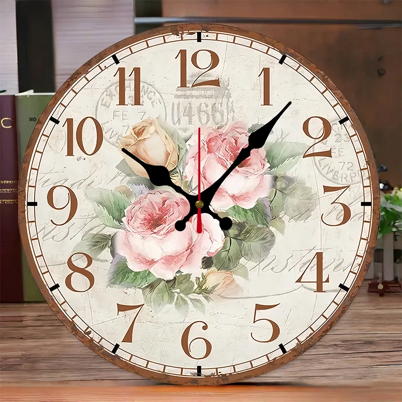 Antique Rose Wooden Round Silent Hanging Wall Clock, Suitable For Living Room, Office, Study Room, Bedroom, Home Decoration