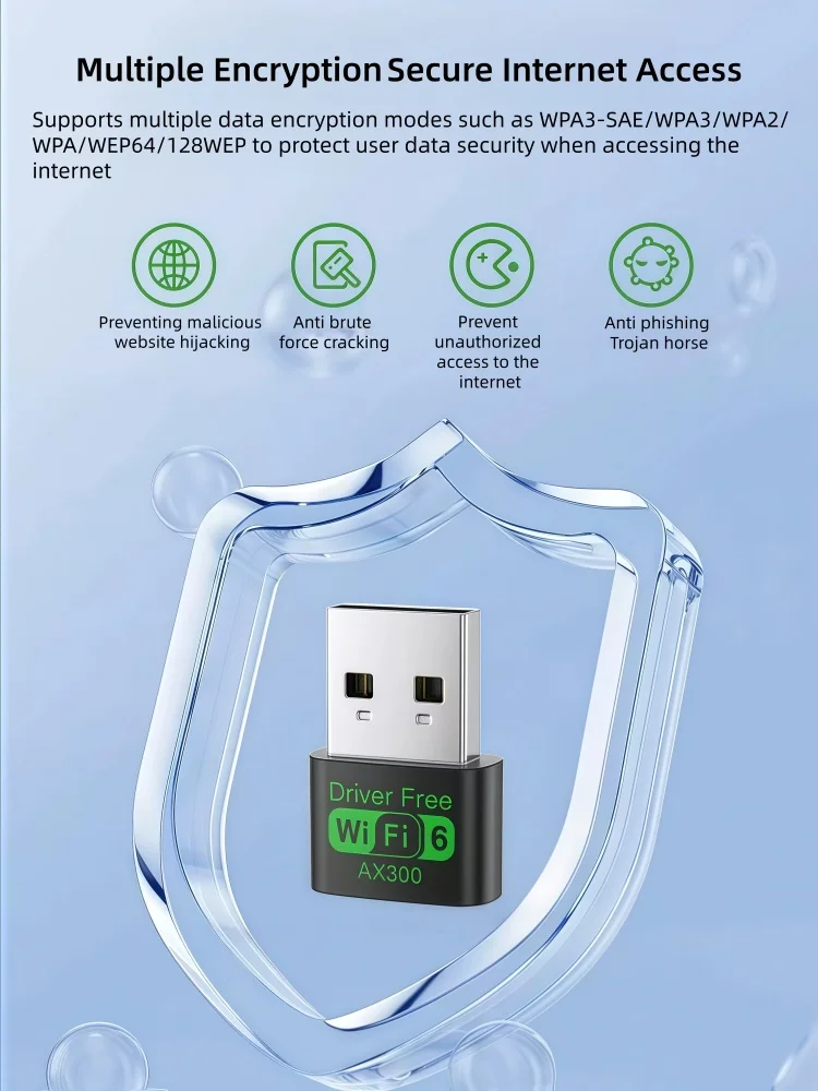 Be the first to review “AX300 WIFI6 New Mini USB Adapter 2.4G 802.11AX Wireless Encryption Dongle Drive Free Wireless Network Card for Win7/10/11,Linux”