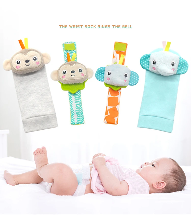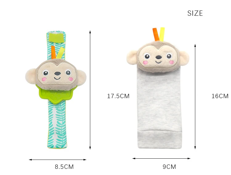4.Mother can put the wrist bell to babies, teach baby to know orange monkey and blue elephant.
