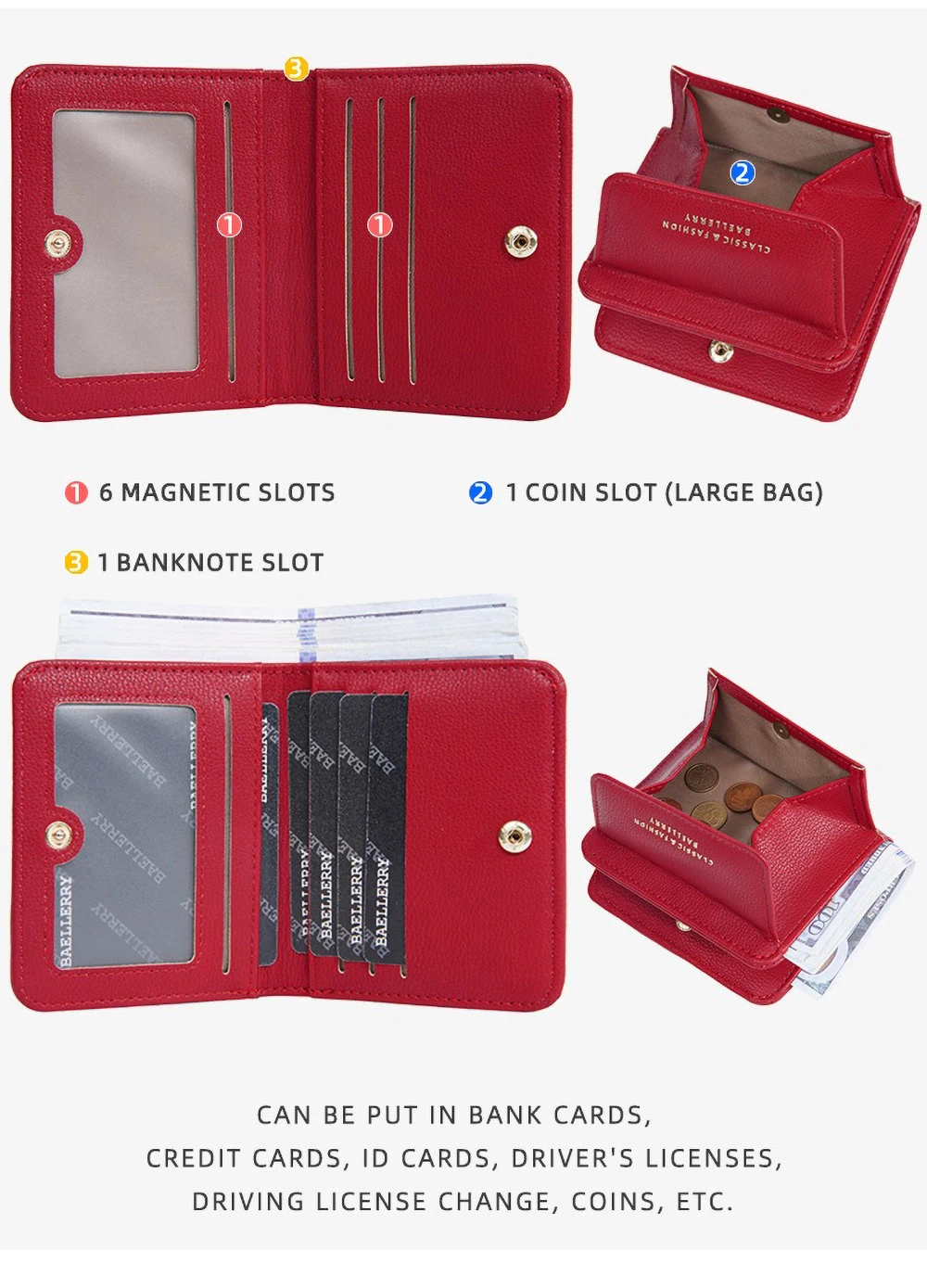 • Interior: Interior Compartment,Coin Pocket,Note Compartment,Photo Holder,Card Holder