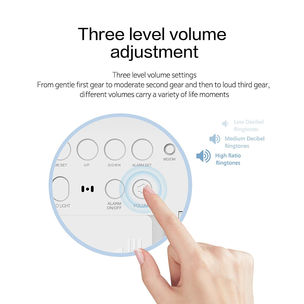 6. 3 Levels of Adjustable Alarm Volume