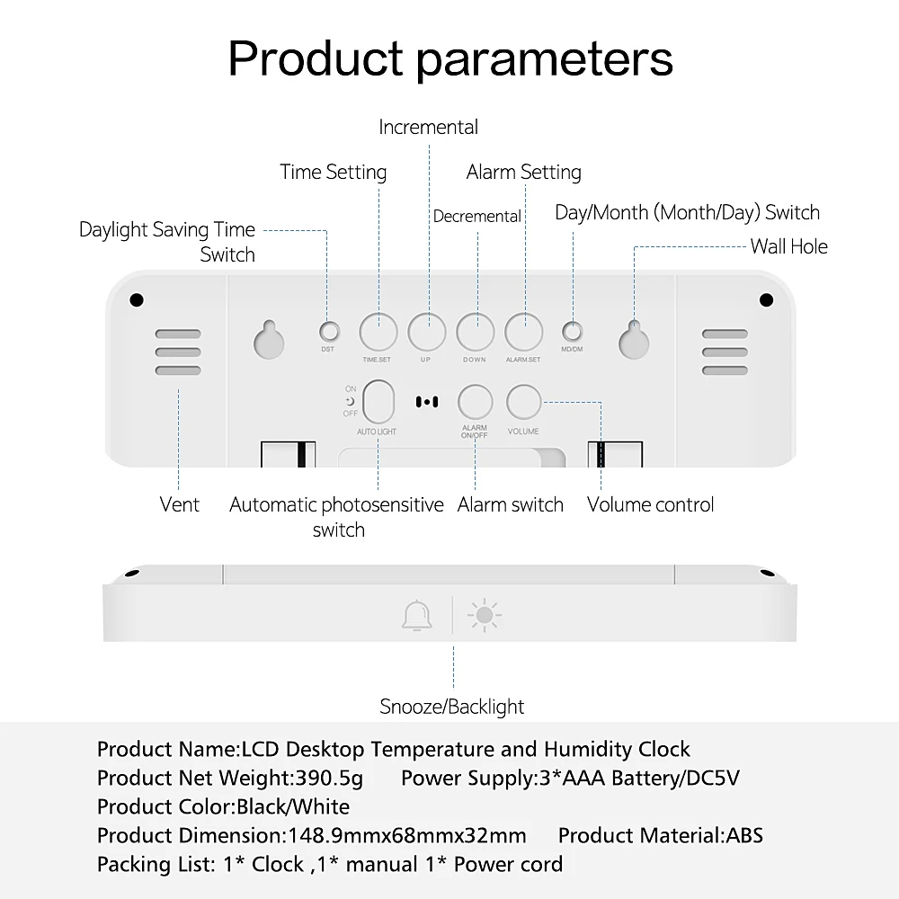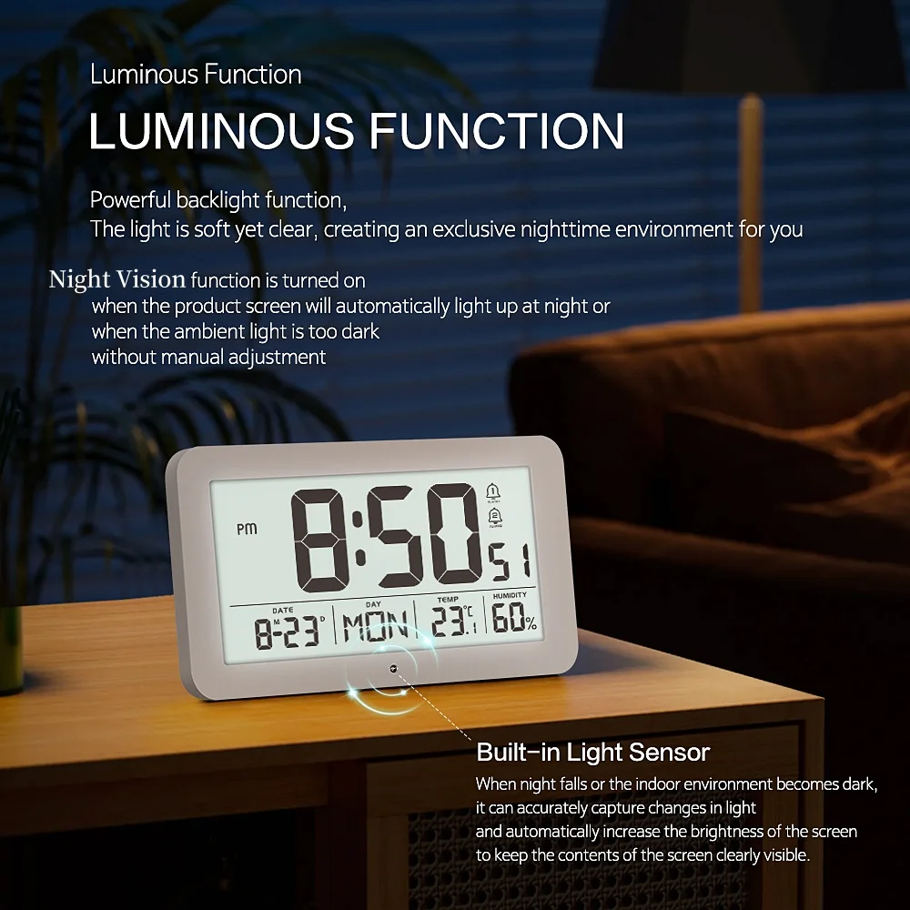 Press “Snooze/Backlight” key to turn on backlight for 5s