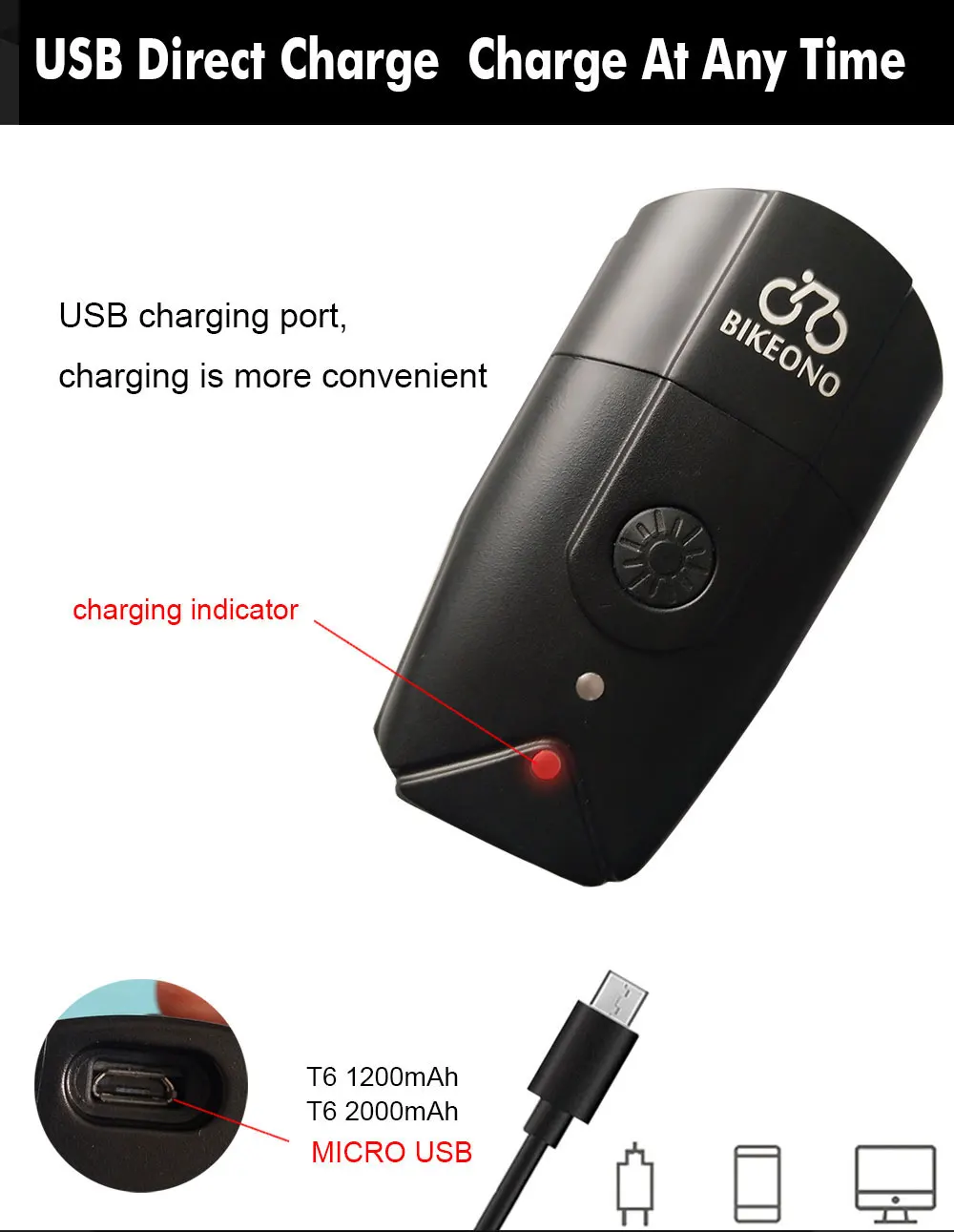 BIKEONO 1000LM Bike Light Front Lamp USB Rechargeable T6 LED Bicycle MTB Light Waterproof Headlight Bike flashlight Accessories