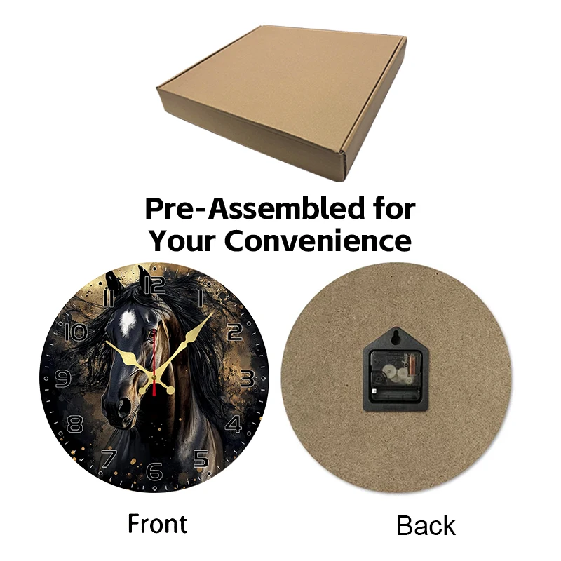 Be the first to review “Black Horse Wooden Round Silent Hanging Wall Clock, Suitable For Living Room, Office, Study Room, Bedroom, Home Decoration”