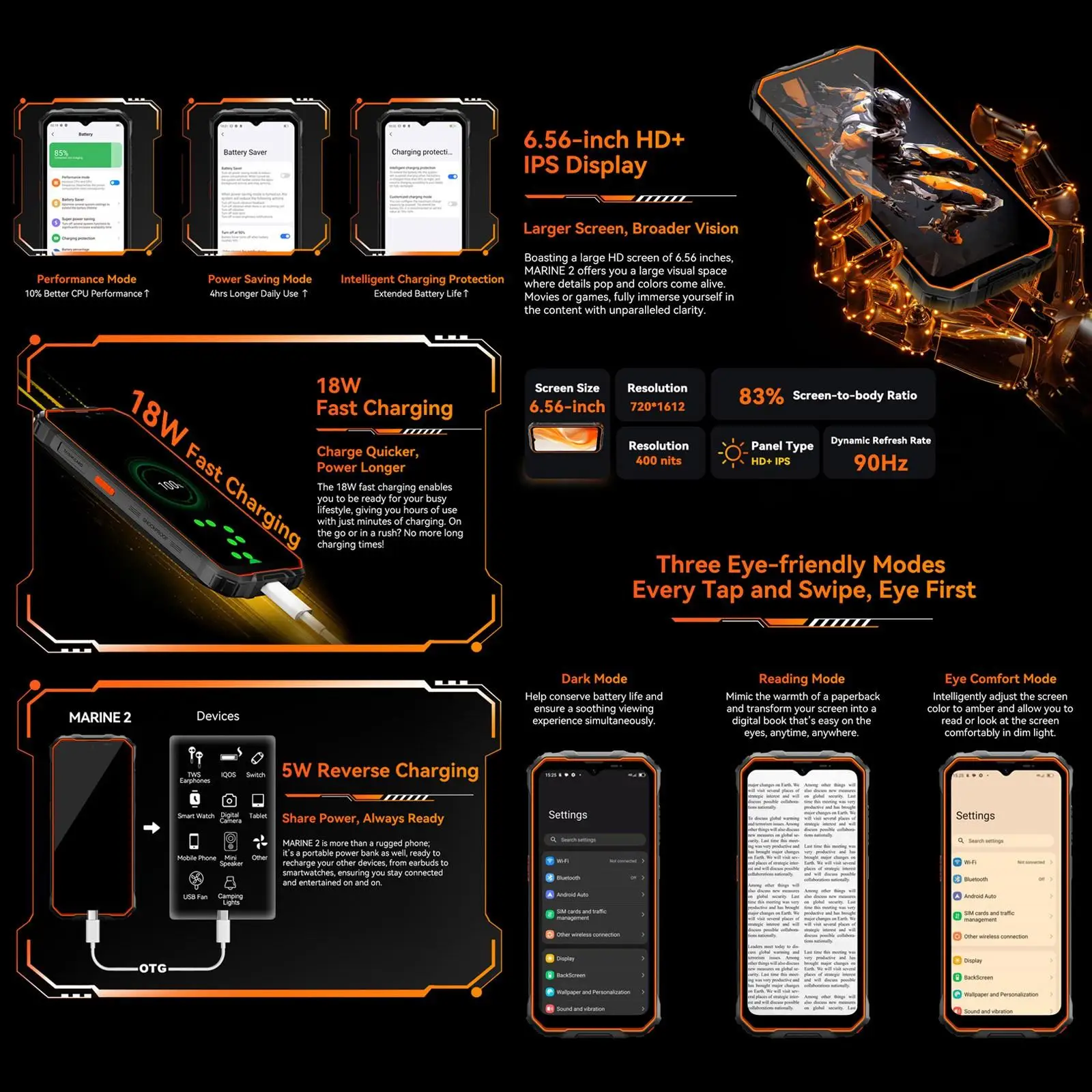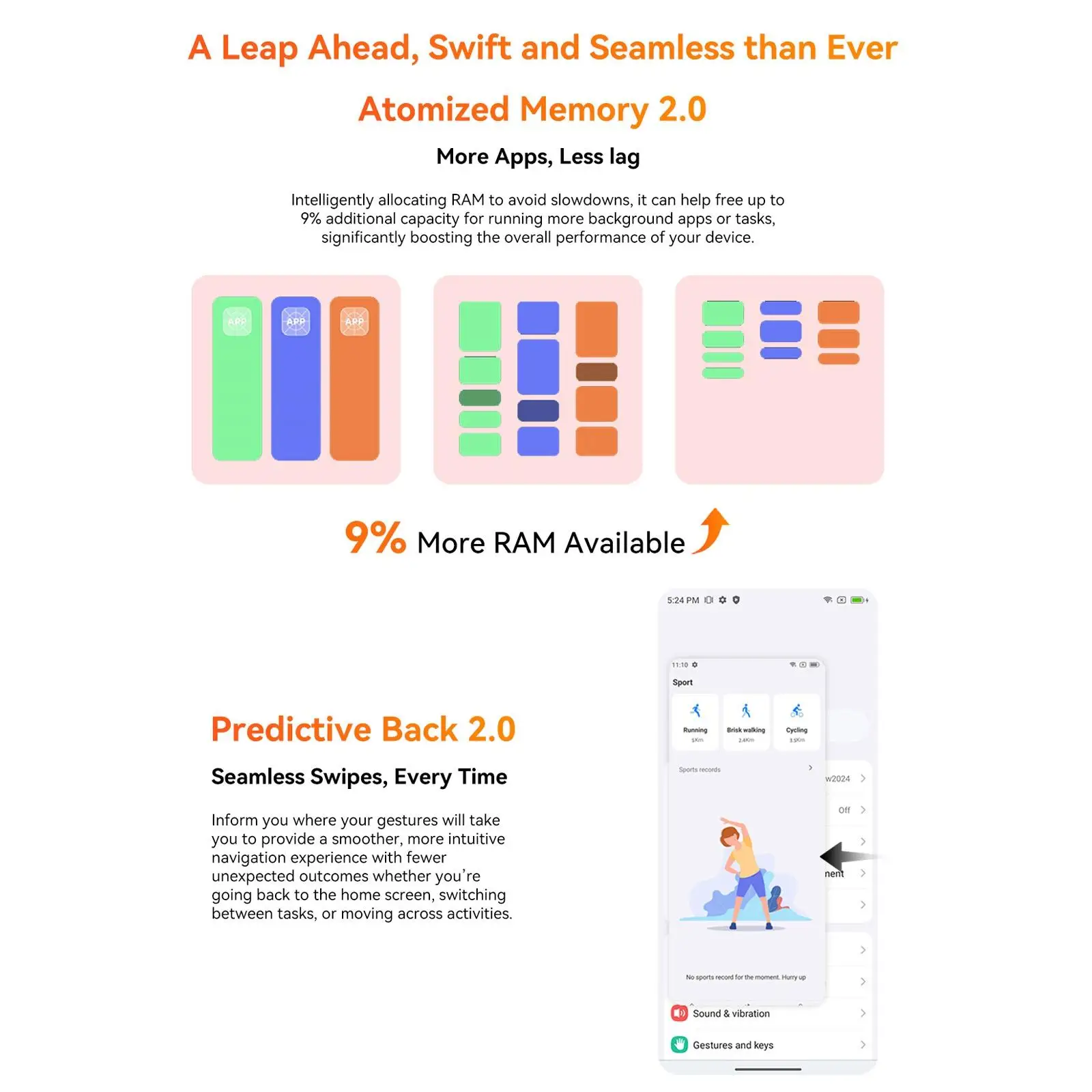 1. CPU: Unisoc UMS9230E T615, octa-core, 2 x A75 1.8GHz + 6 x A55 1.6GHz