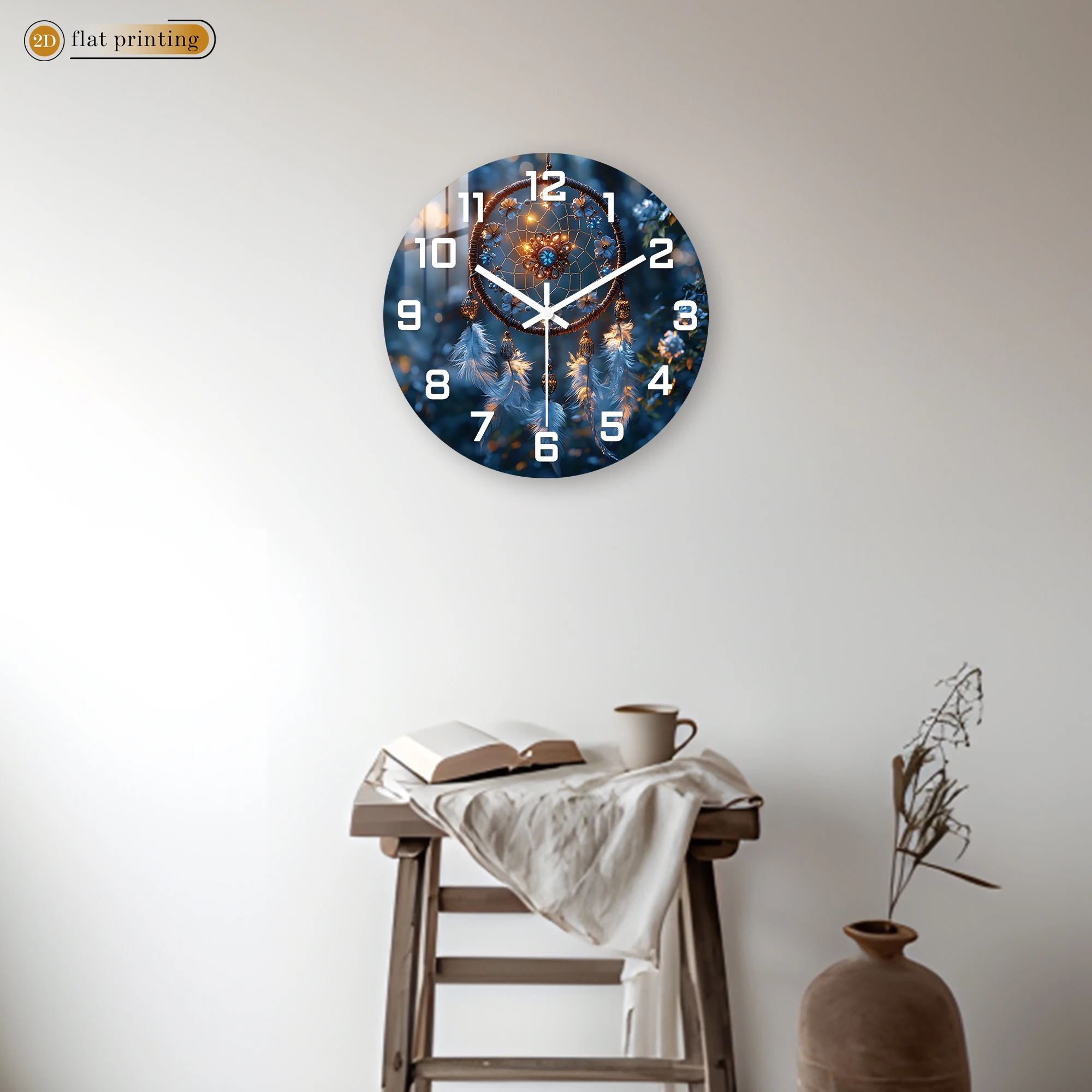 Bohemian Dreamcatcher with Feathers Wall Clock, Bedroom Living Room Decor, Silent Quartz Movement Artistic Timepiece