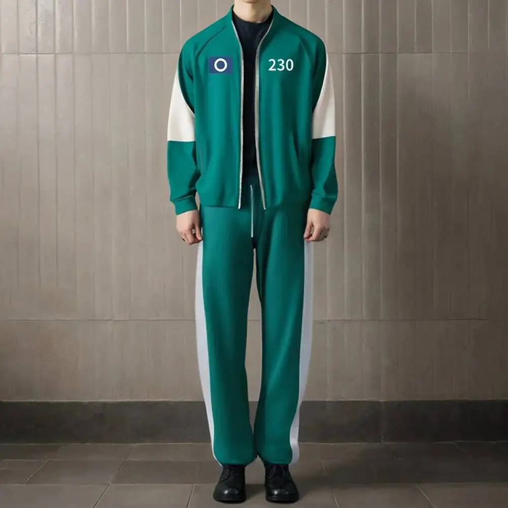 Calamari Game Cosplay Costume Green Tracksuit Outfits Jacket T-shirt Pants 001 456 230 Teenagers Sweatshirt Adult Kids Suit
