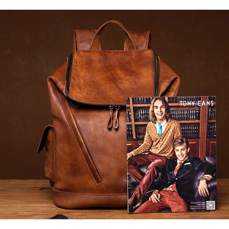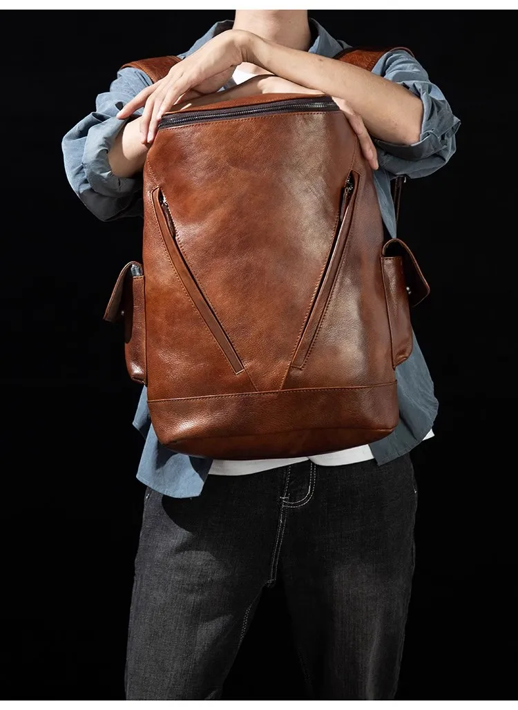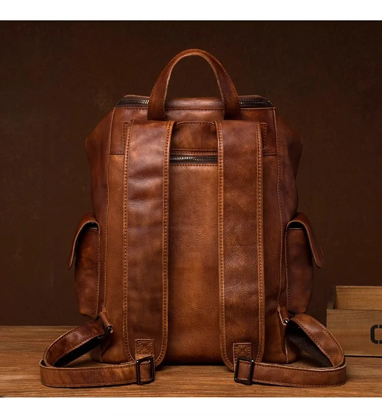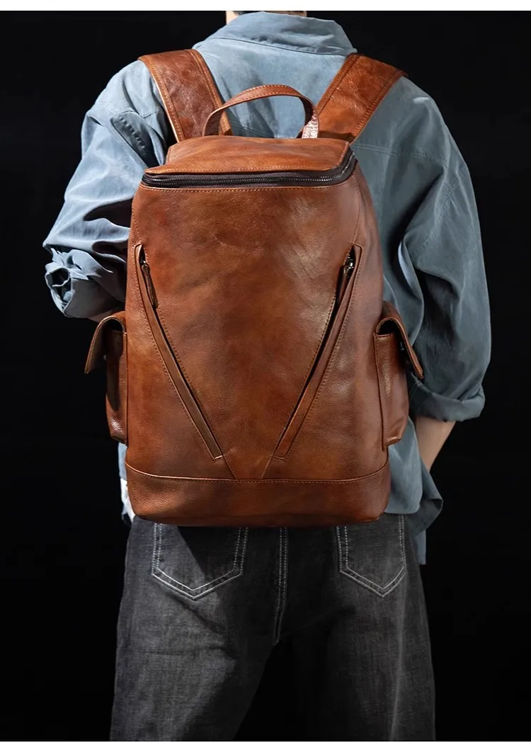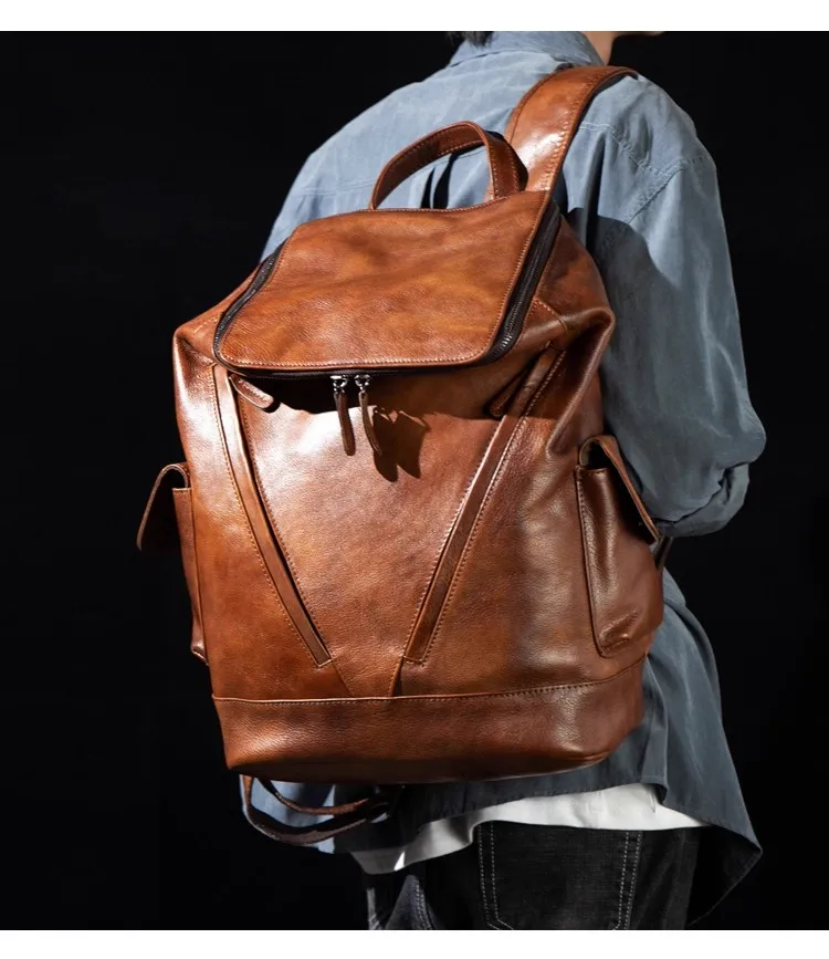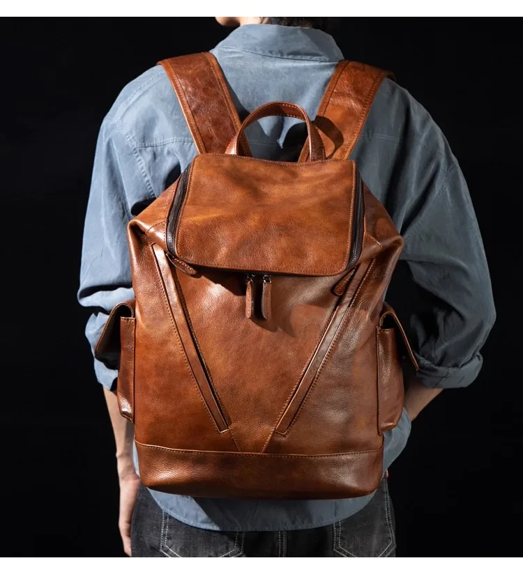 Casual Joker leather backpack retro tide men’s leather backpack large capacity travel backpack 15 inch business computer bag