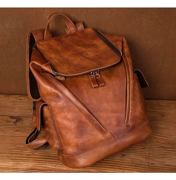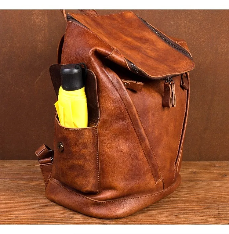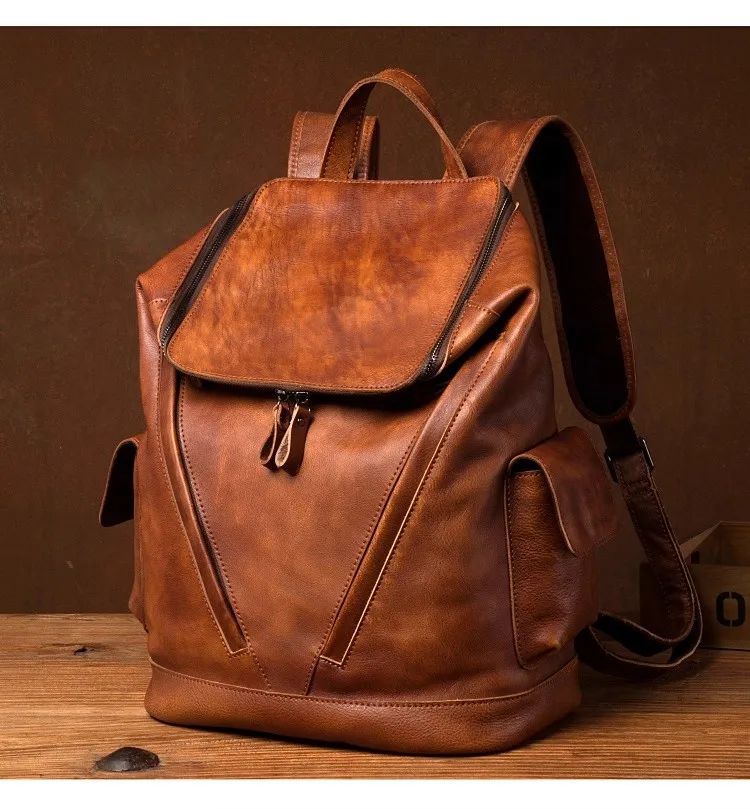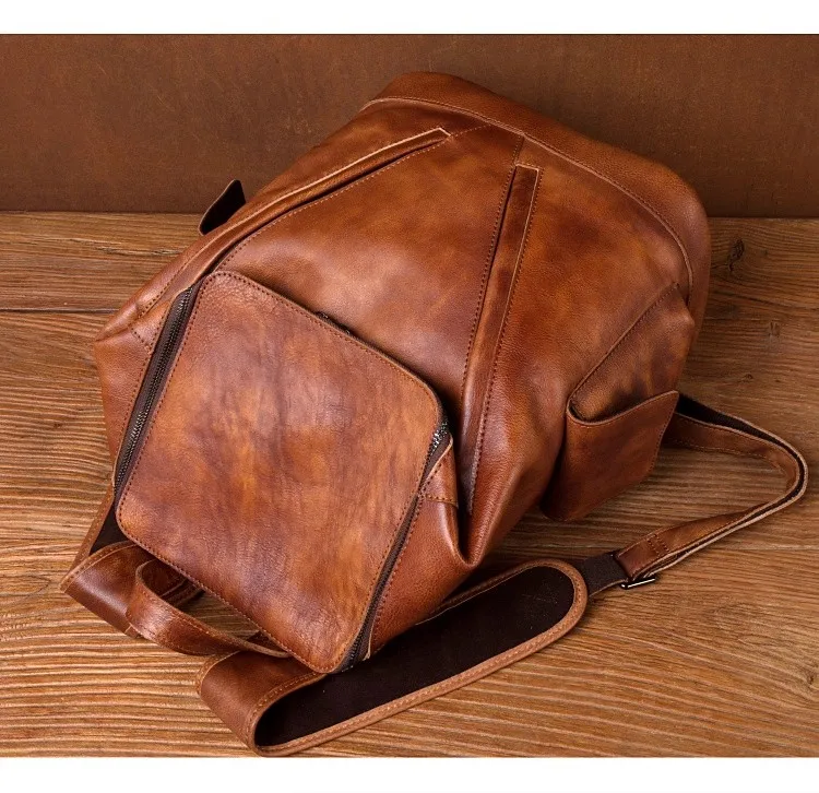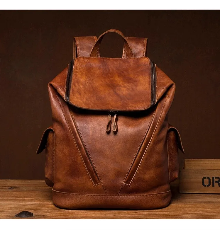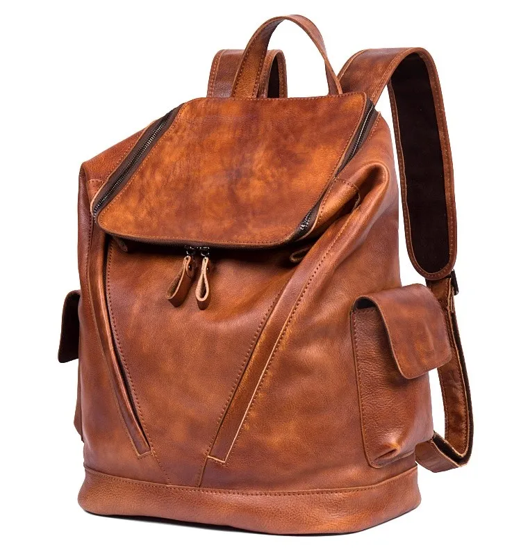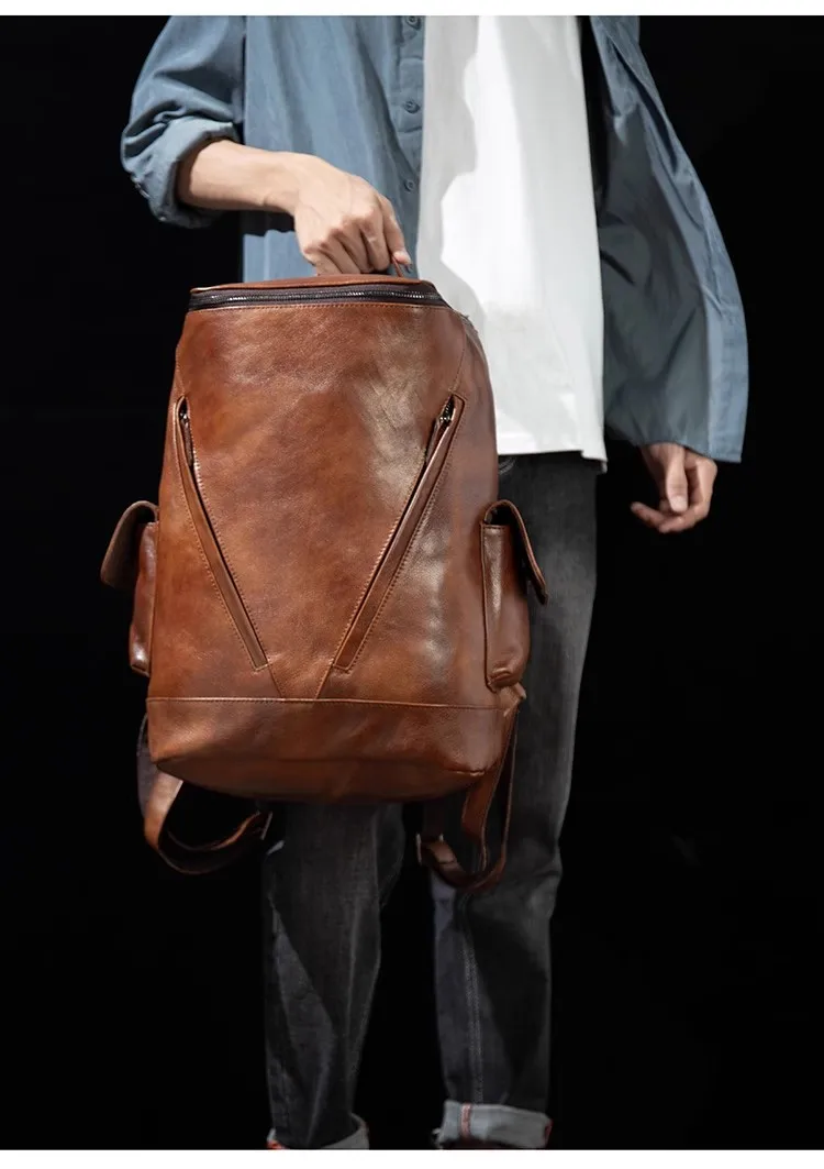 Casual Joker leather backpack retro tide men’s leather backpack large capacity travel backpack 15 inch business computer bag