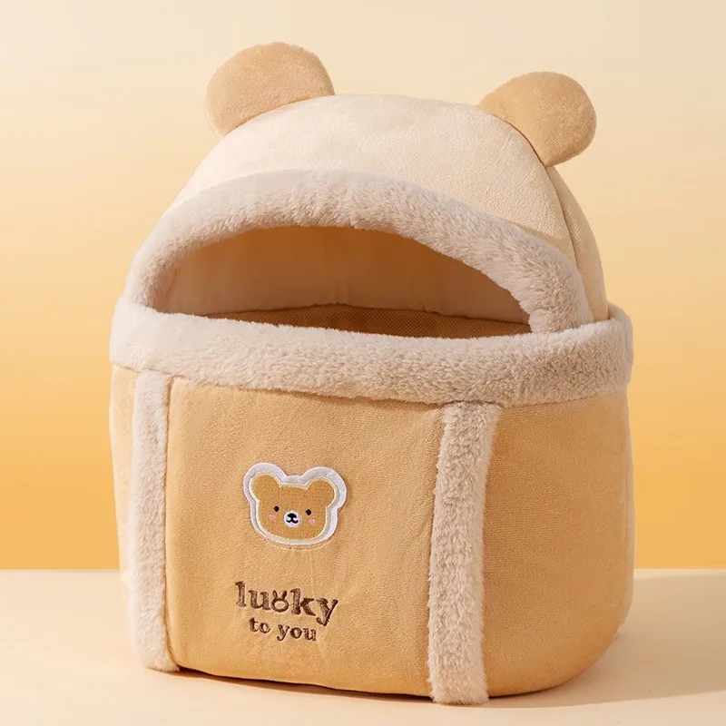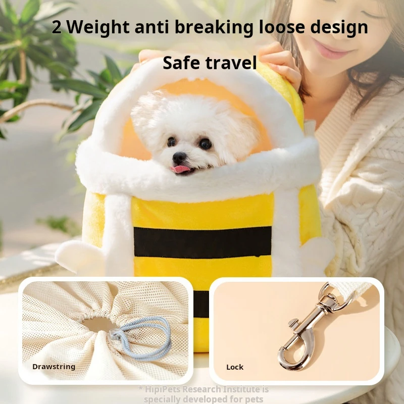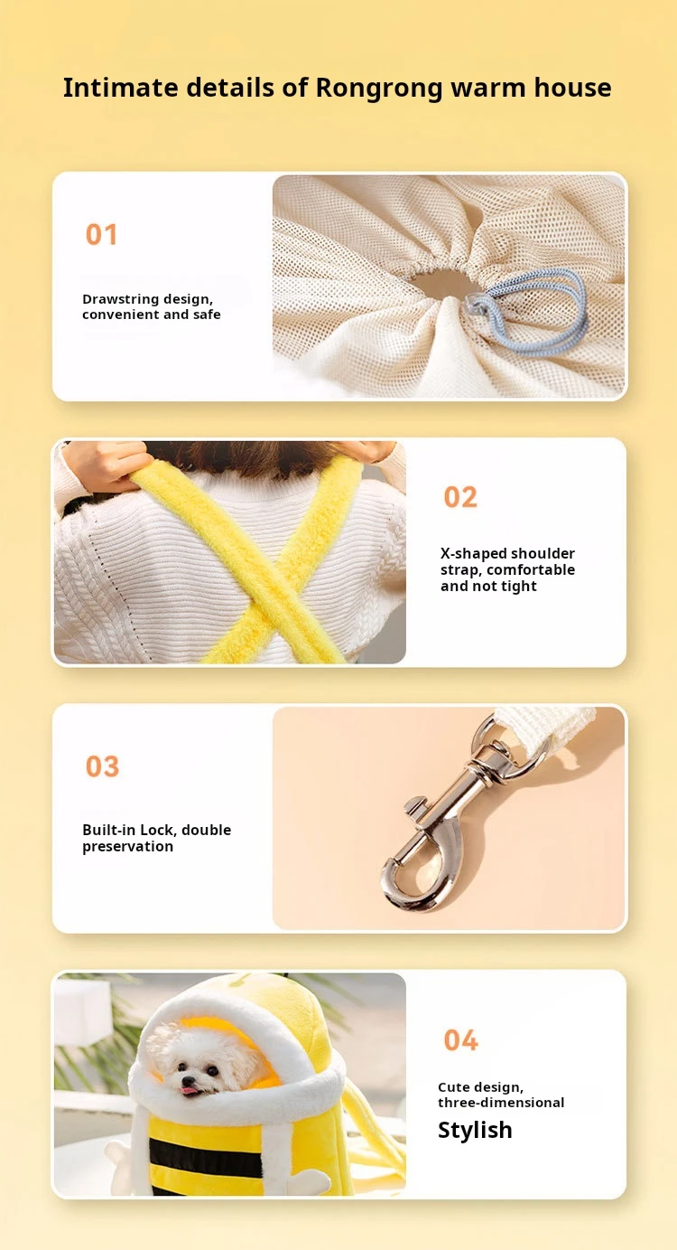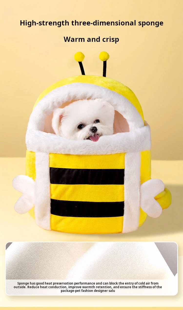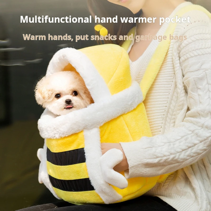 Cat Dog Backpack Carrier Winter Warm Soft Plush Cute Little Bee Carry Pets Bags for Outdoor Travel Walking Cute Pets Backpack