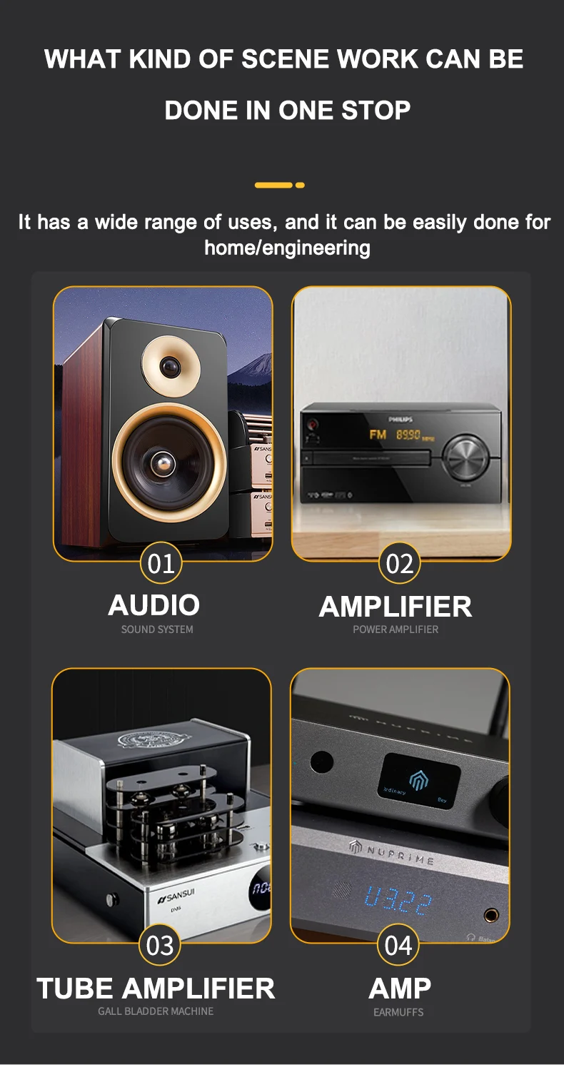 Applicable objects: speakers, amplifiers, instrument, turntable, CD/DVD players, recorders, DAC and other equipments