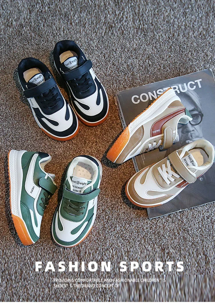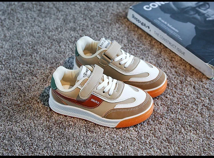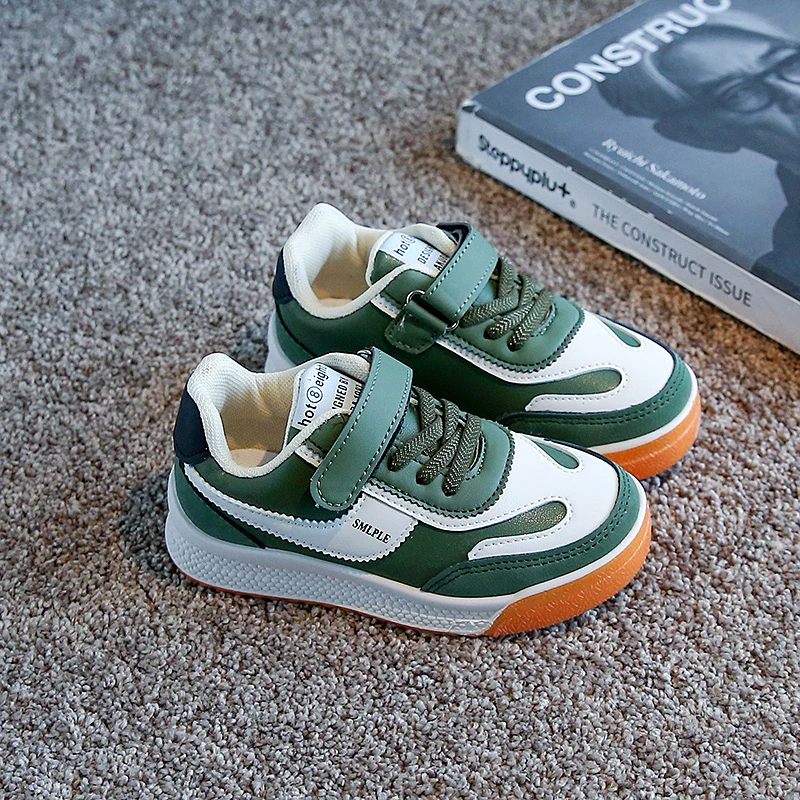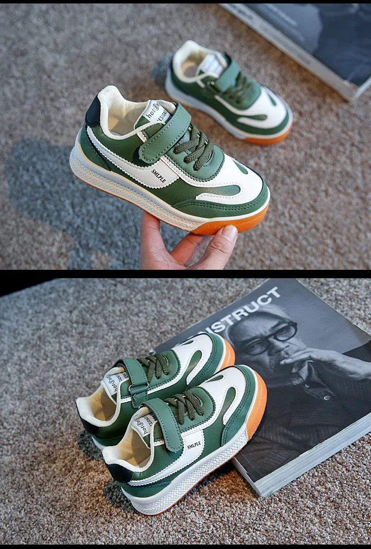 Children’s Spring New Leather Upper Sneakers Middle Large Children’s Casual Shoes Boys and Girls Soft Sole Students Tennis Shoes