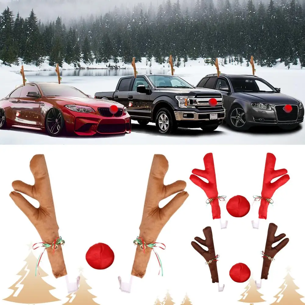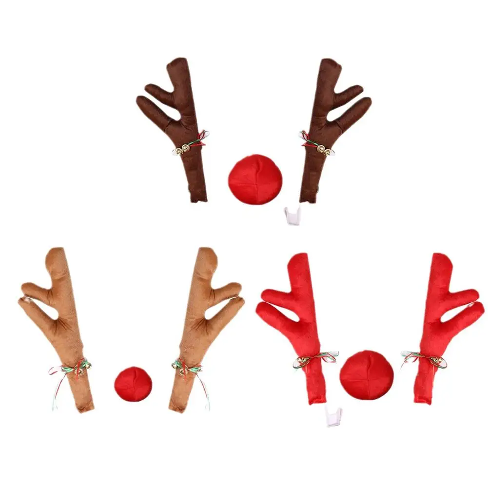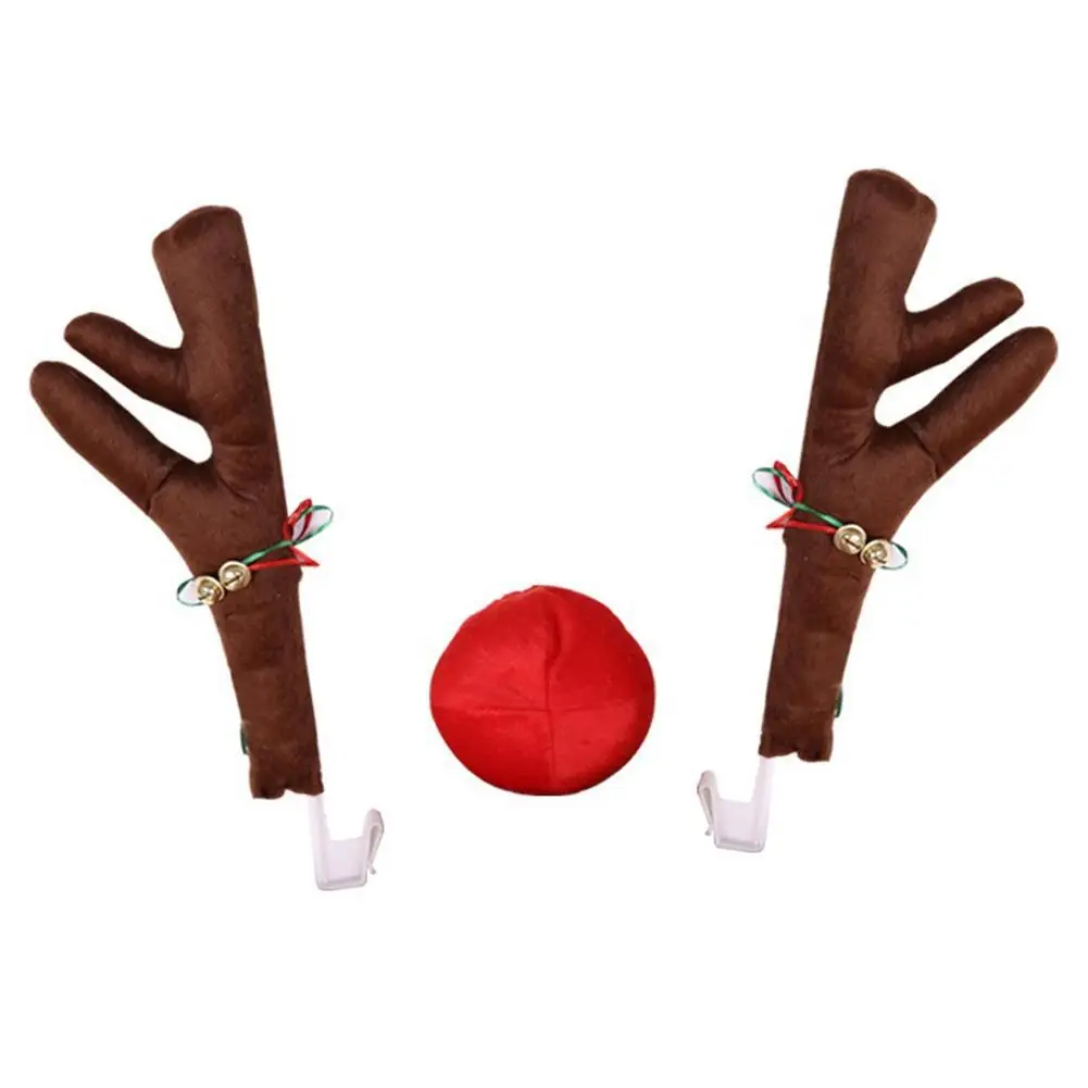 Christmas Antlers Short Plush Car Exterior Decoration Suitable For All Cars Red Nose Antlers Festival Luminous Bell Decorations
