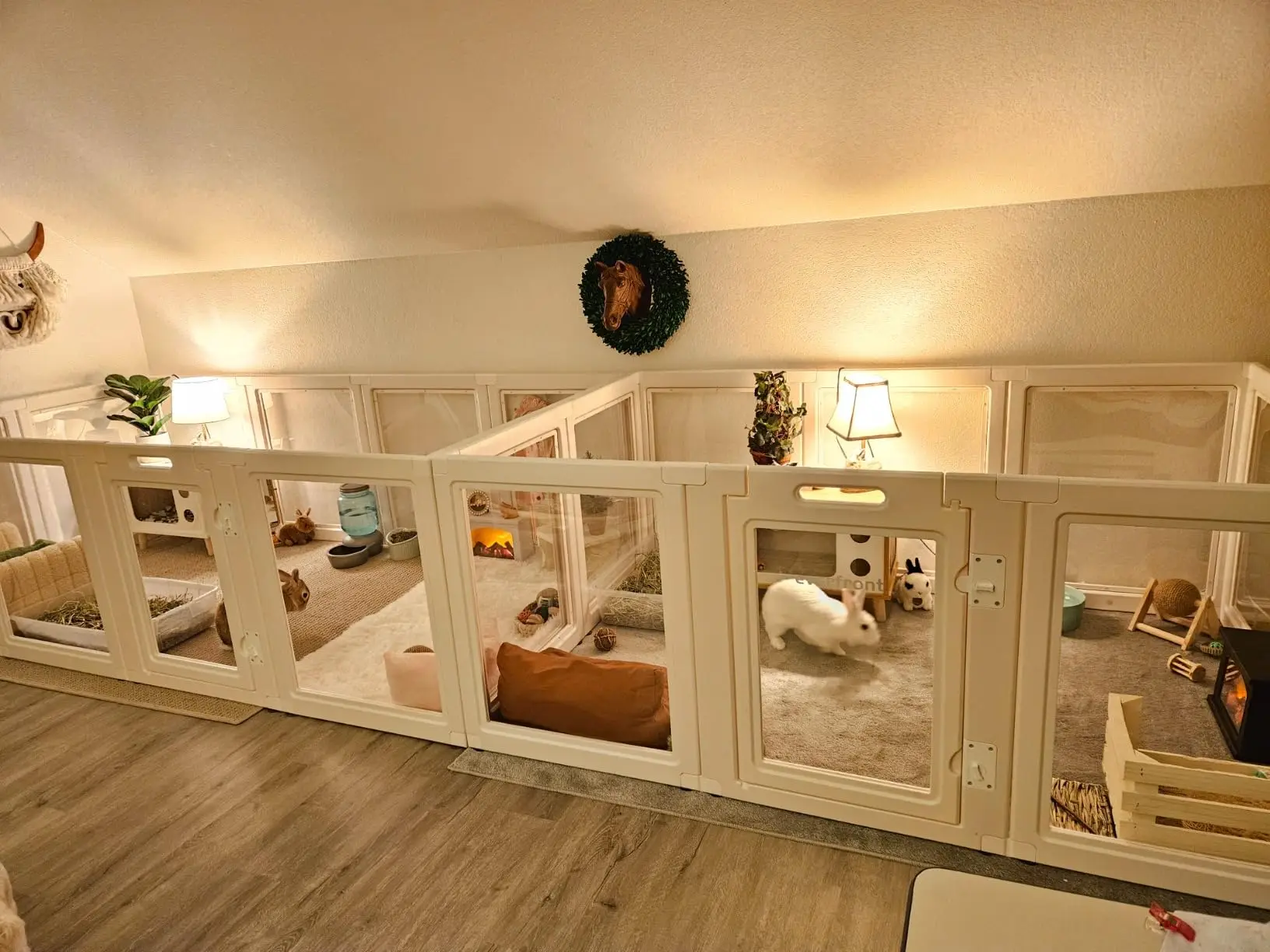 銆�VERSATILE & EASY CLEANING銆慜ur playpen fits various kinds of pets, such as puppy, kitten, bunny, guinea pig, ferret, etc. The playpen can also serve as pet barrier, play yard, and whelping box, and modular desgin means you can assemble it into different shapes as you like (Rectangular, L-shape, LInear), and you can easily expand the area by adding extra panels. The material is rust-free and paintless, and the sleek surface is super easy to clean.