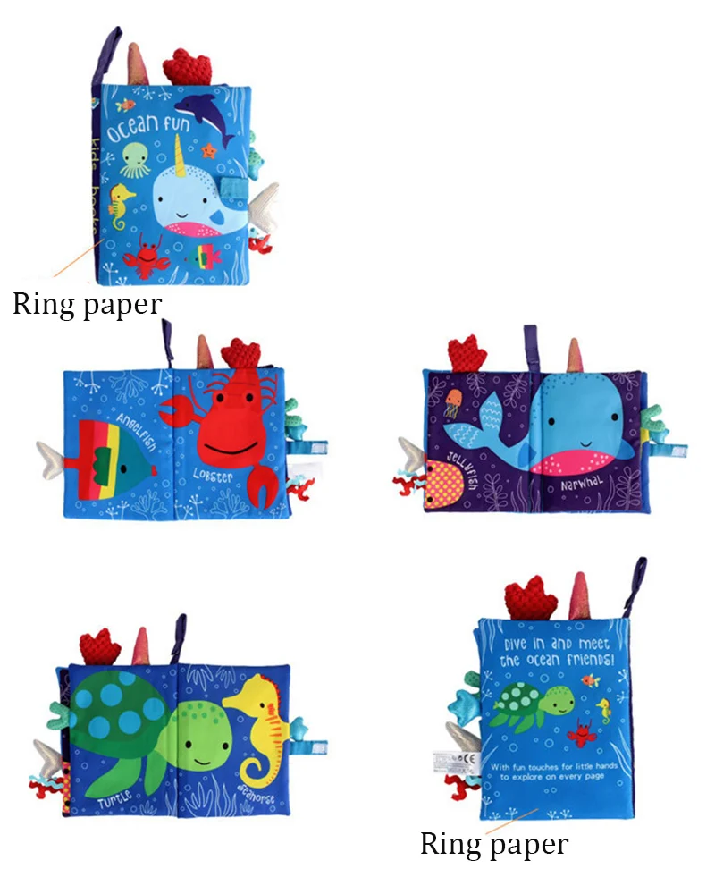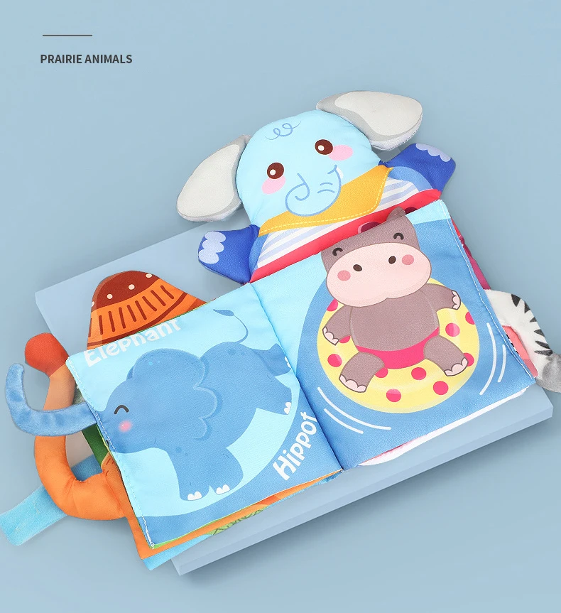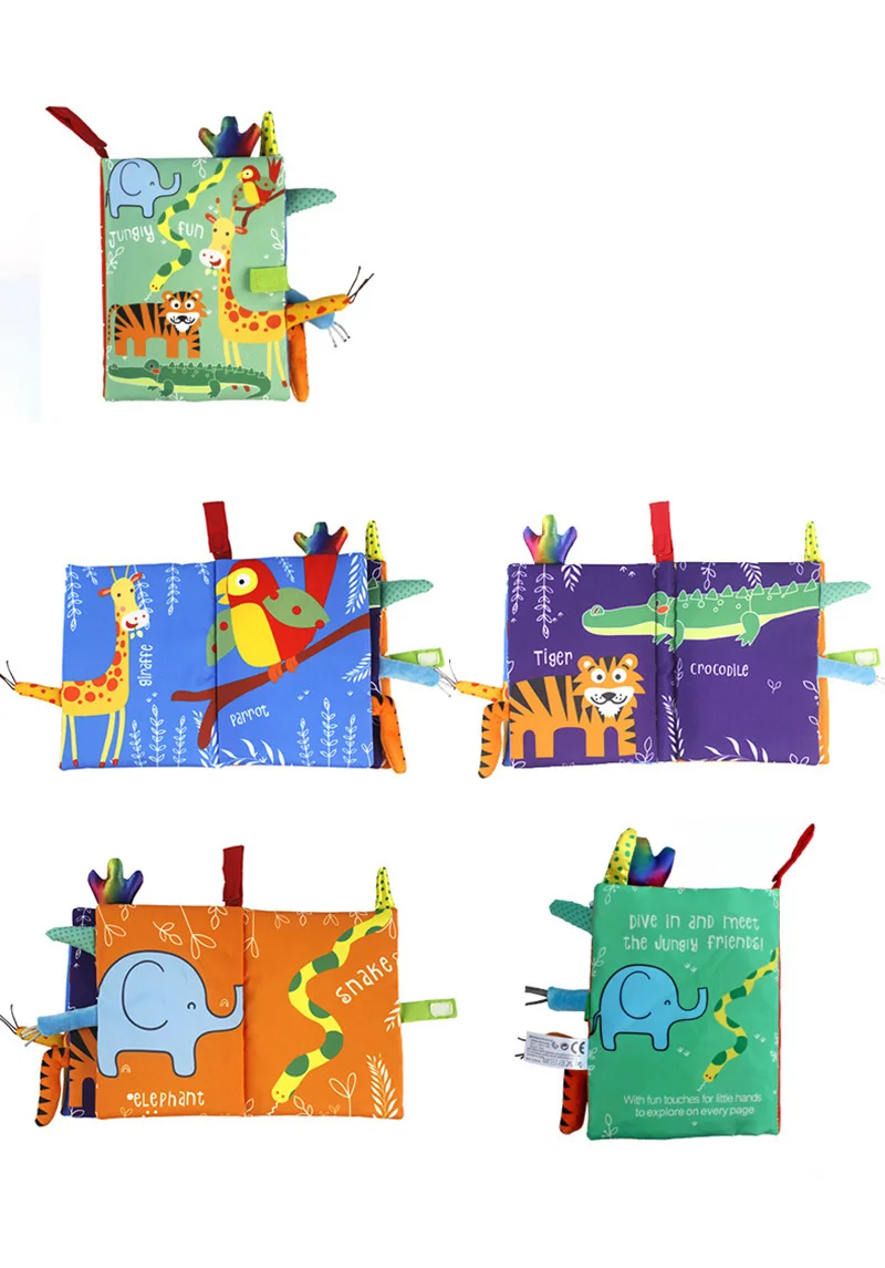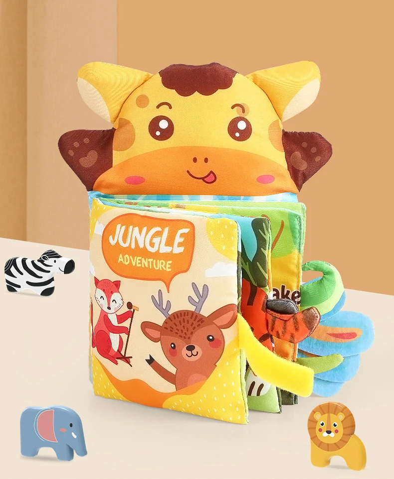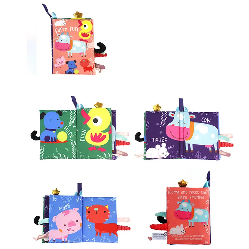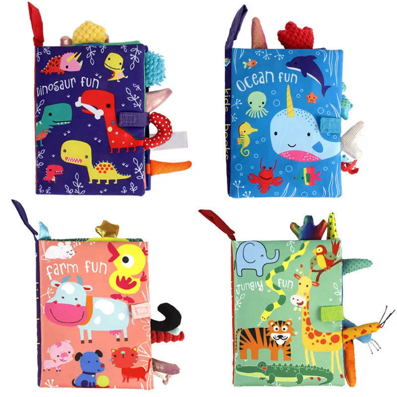 Cloth Books Baby Toys Animal Style Monkey/Owl/Dog Newborn Learning Educational Fabric Book Kids Sensory Infant Baby Rattles Toy