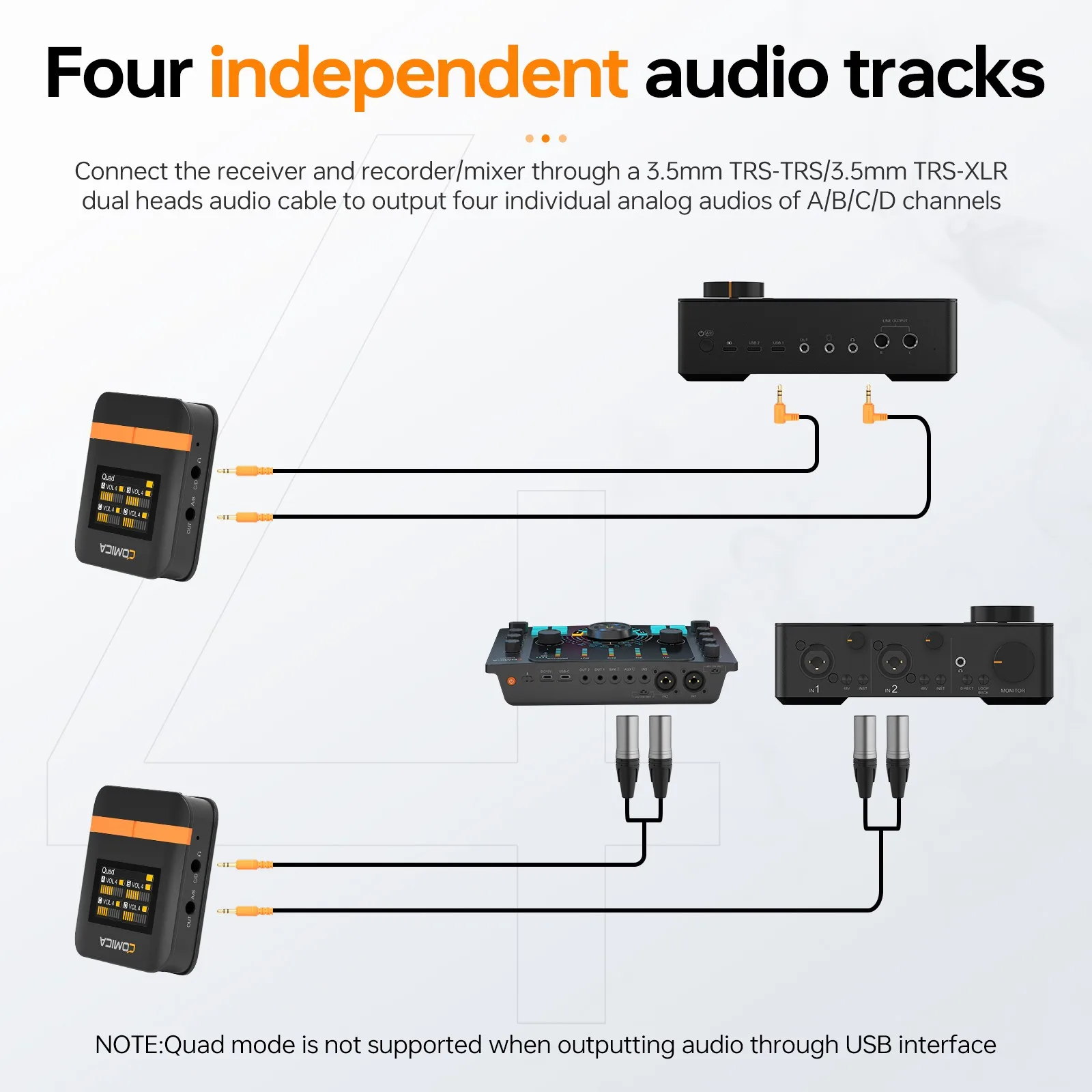 NOTE: Quad mode is not supported when outputting audio through USB interfaceSupport 4 Audio Tracks Mixing and Individual Output