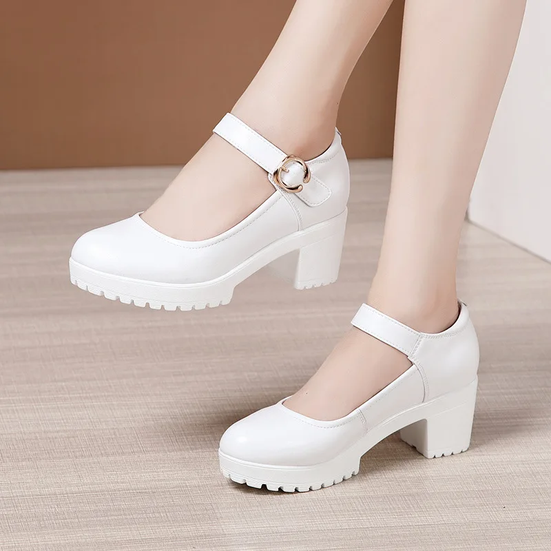 Be the first to review “Cowhide high heels women’s platform round toe Shallow mouth work shoes women’s single shoes girls leather shoes large size”