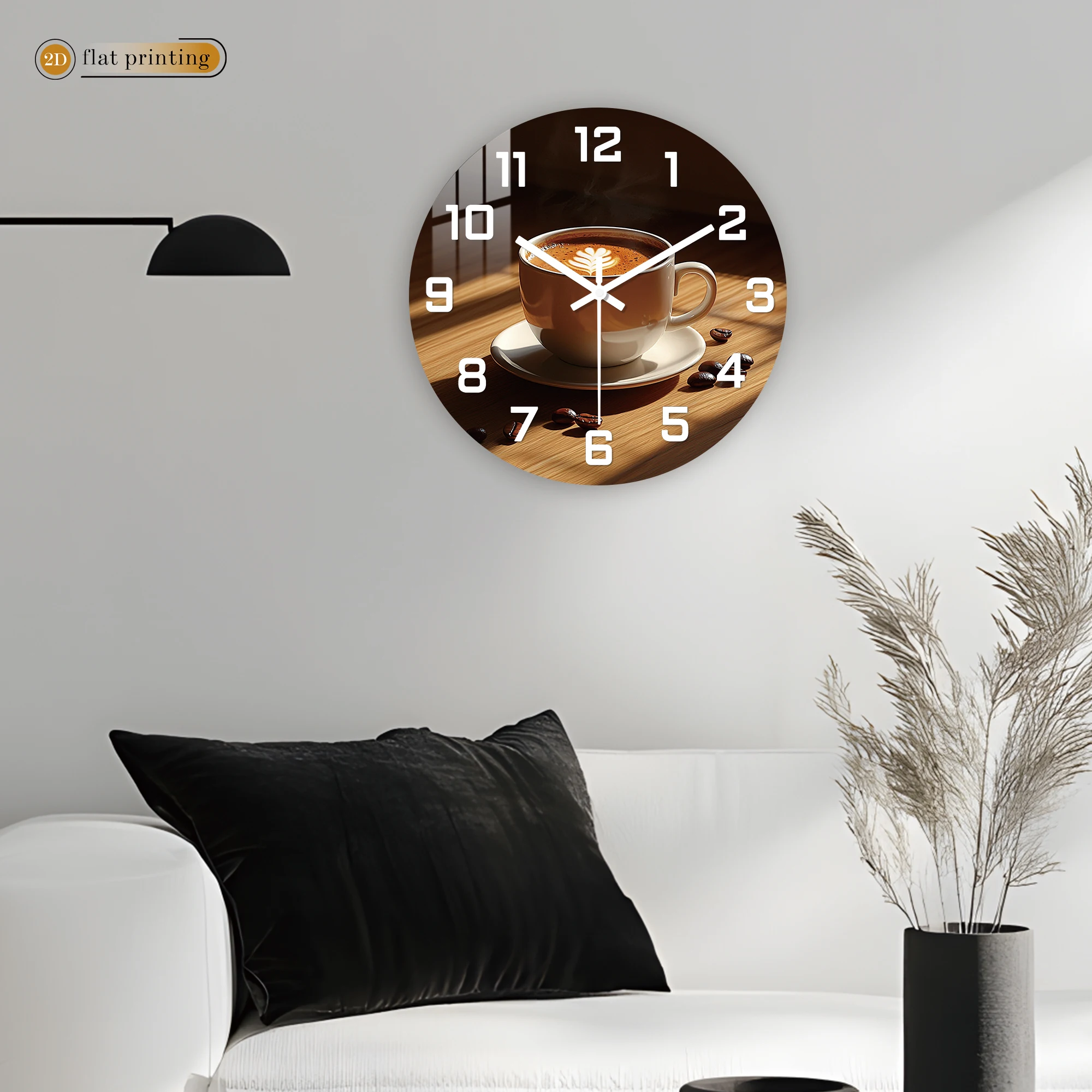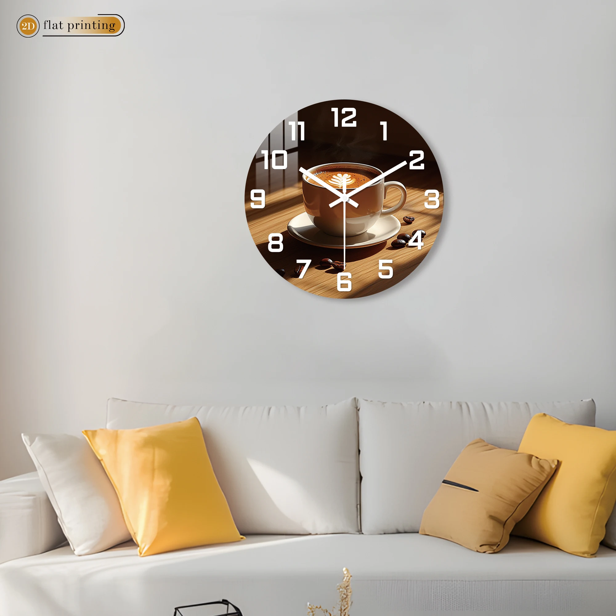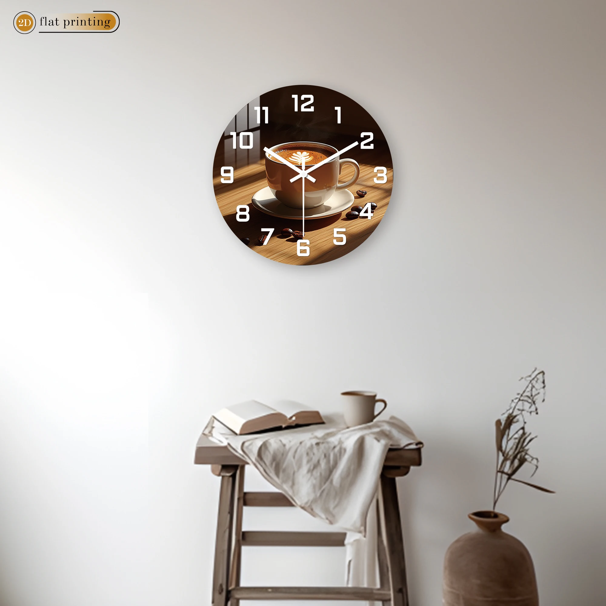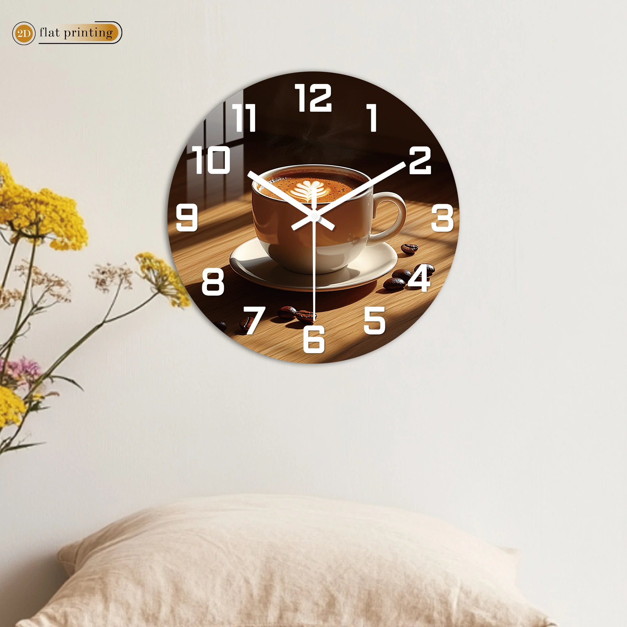 Creative Coffee Cup Design Wall Clock, Latte Art Decor Clock for Kitchen Cafe, Silent Quartz Movement Home Decor