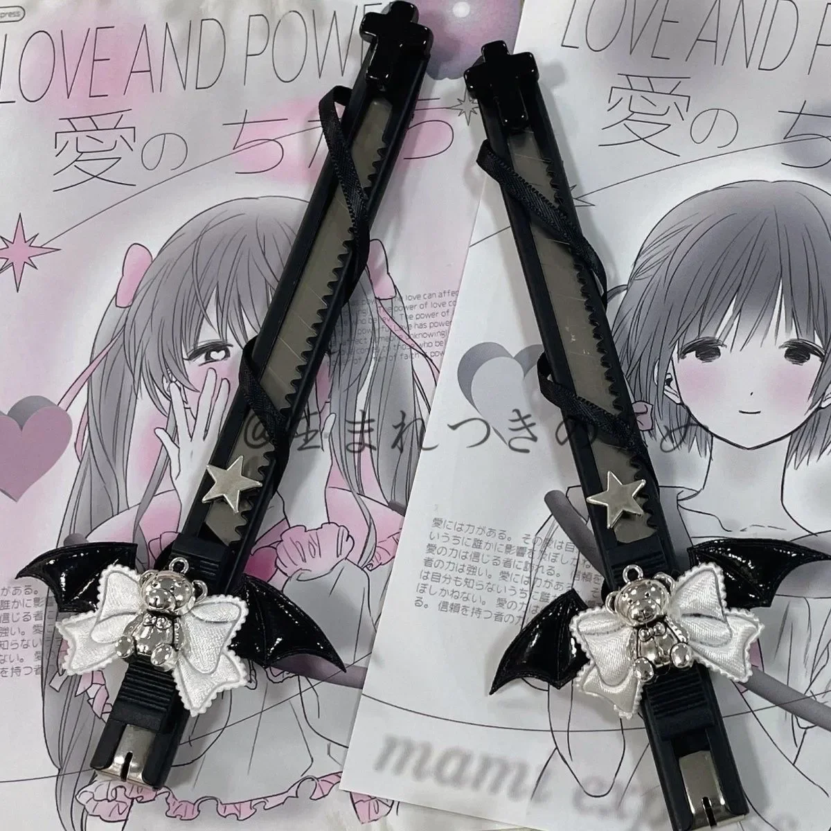 Be the first to review “Creative Design Black Color Utility Knife Cute Cartoon Bear Wings Cutter Box Sweet Lace Bow Envelop Cutter Student Supplies”