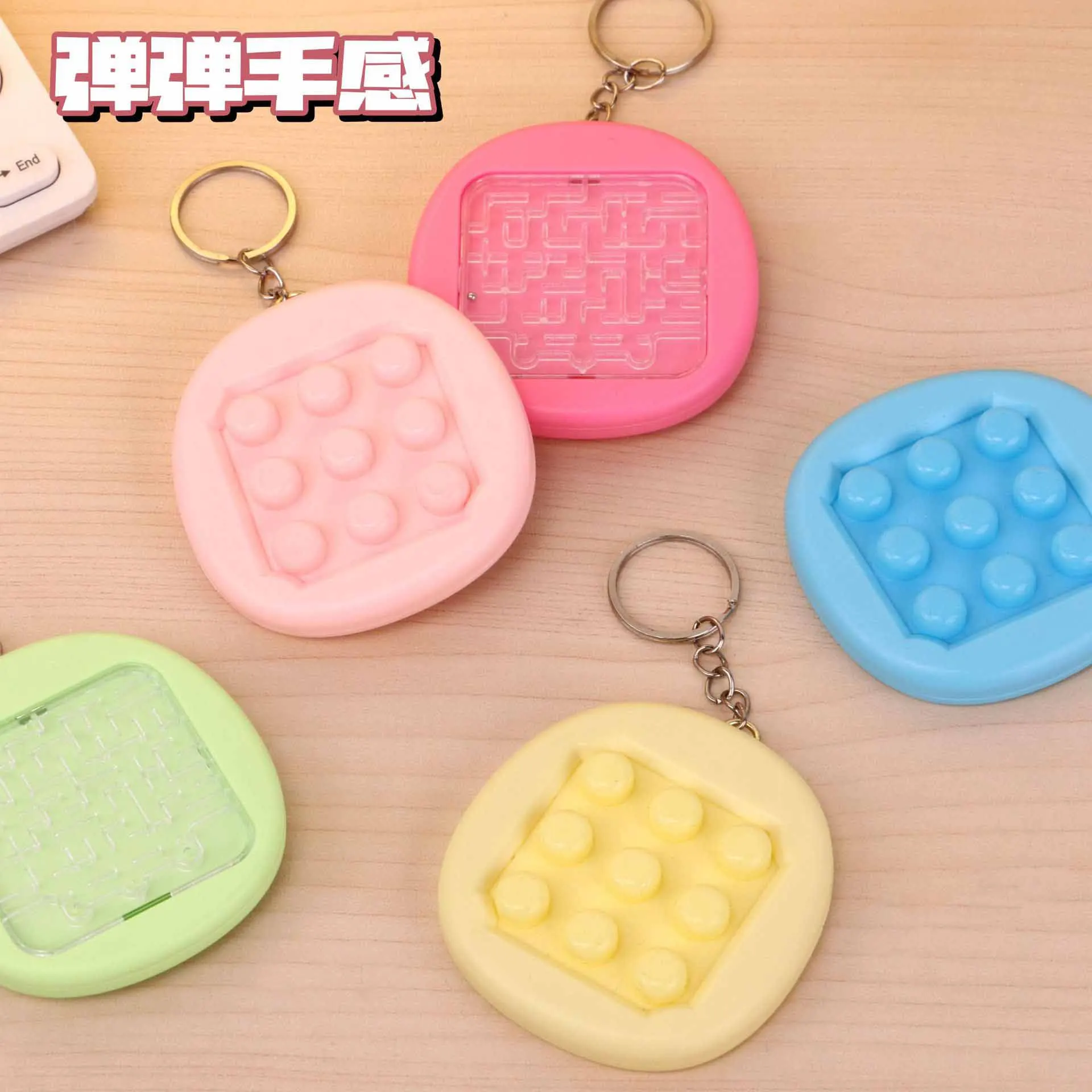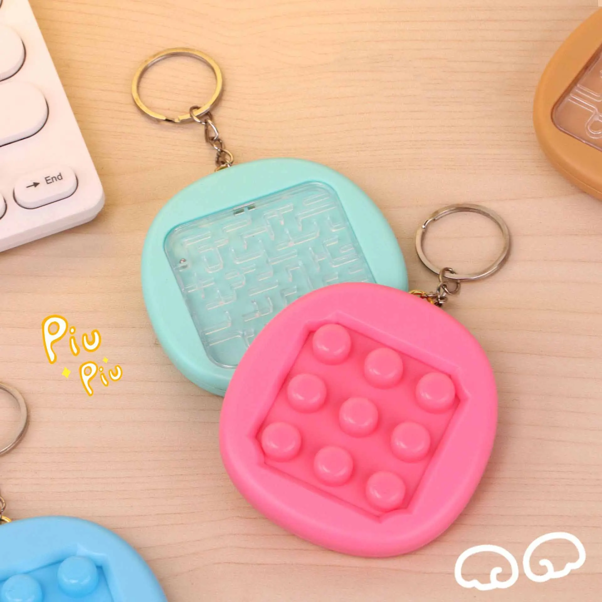 Creative Fun Mini Handheld Maze Bubbles Pinch Music Fidget Toys Kids Stress Relief Toys Keychain Pendant Double-sided Playable