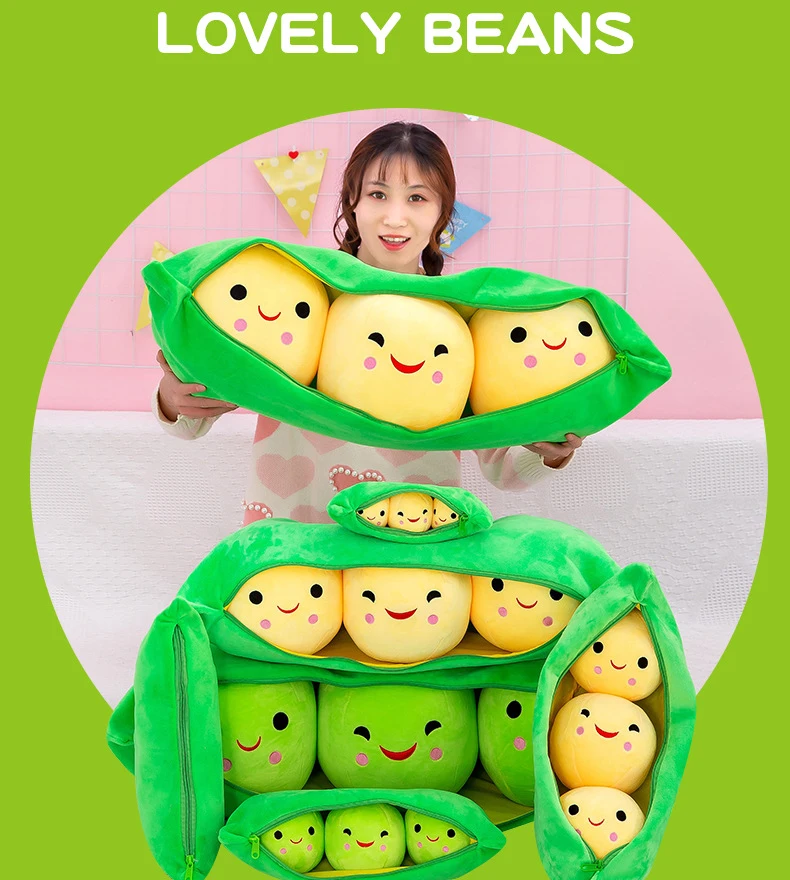 Cute Plush Peas Filled Plant Toy Creative Pea Children Kawaii Doll Bean Baby Pillow Cushion Girl Gift
