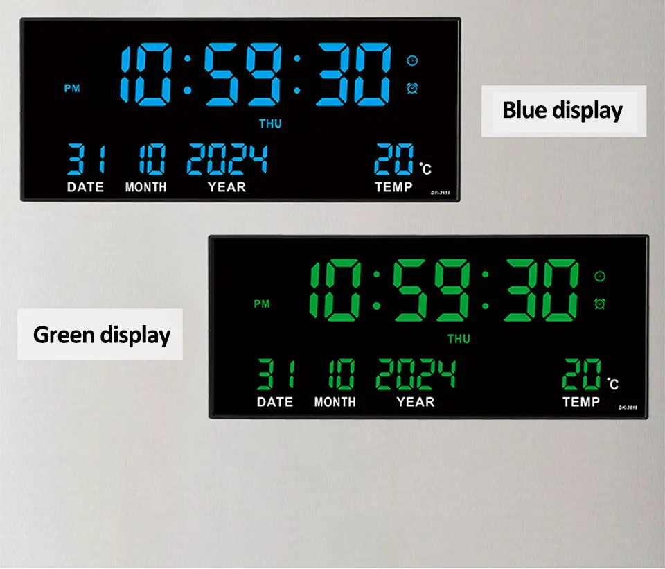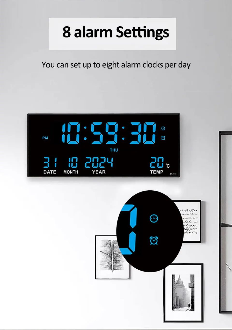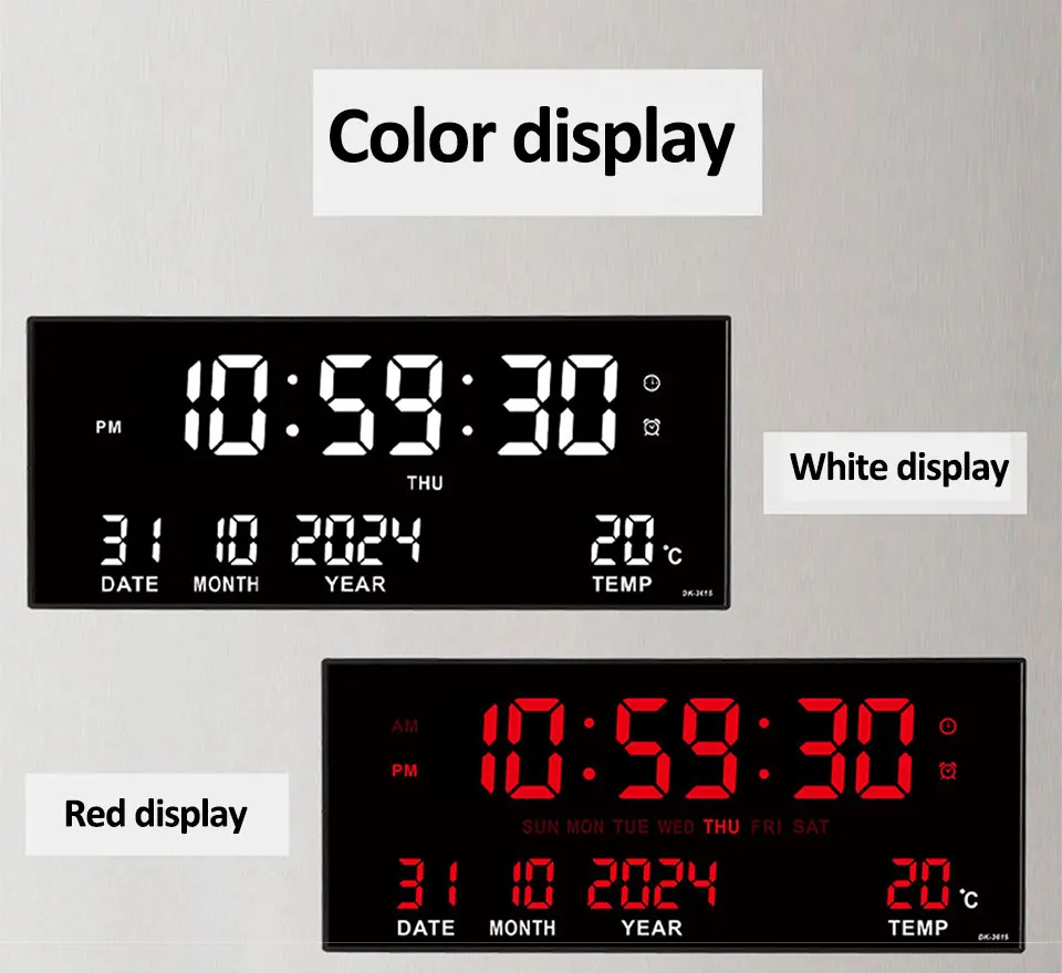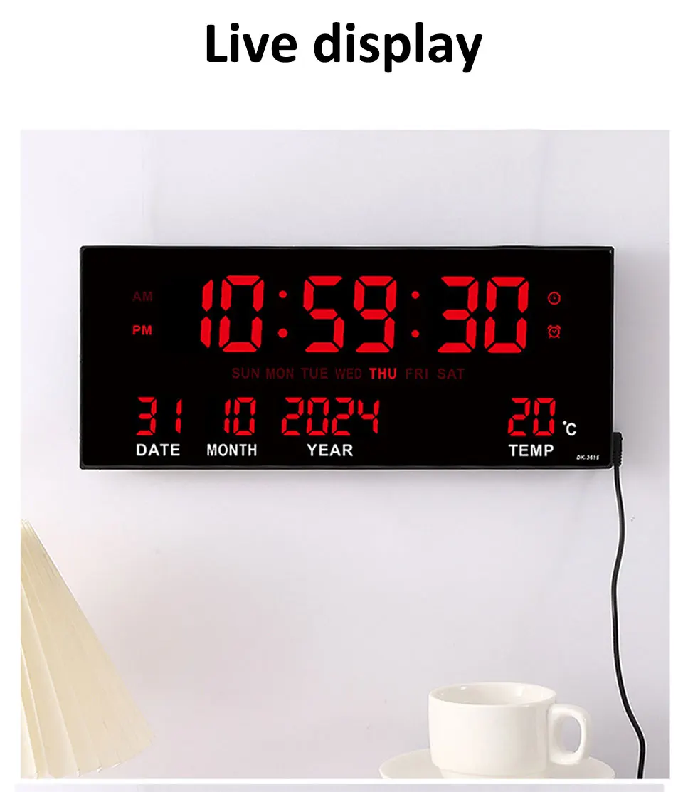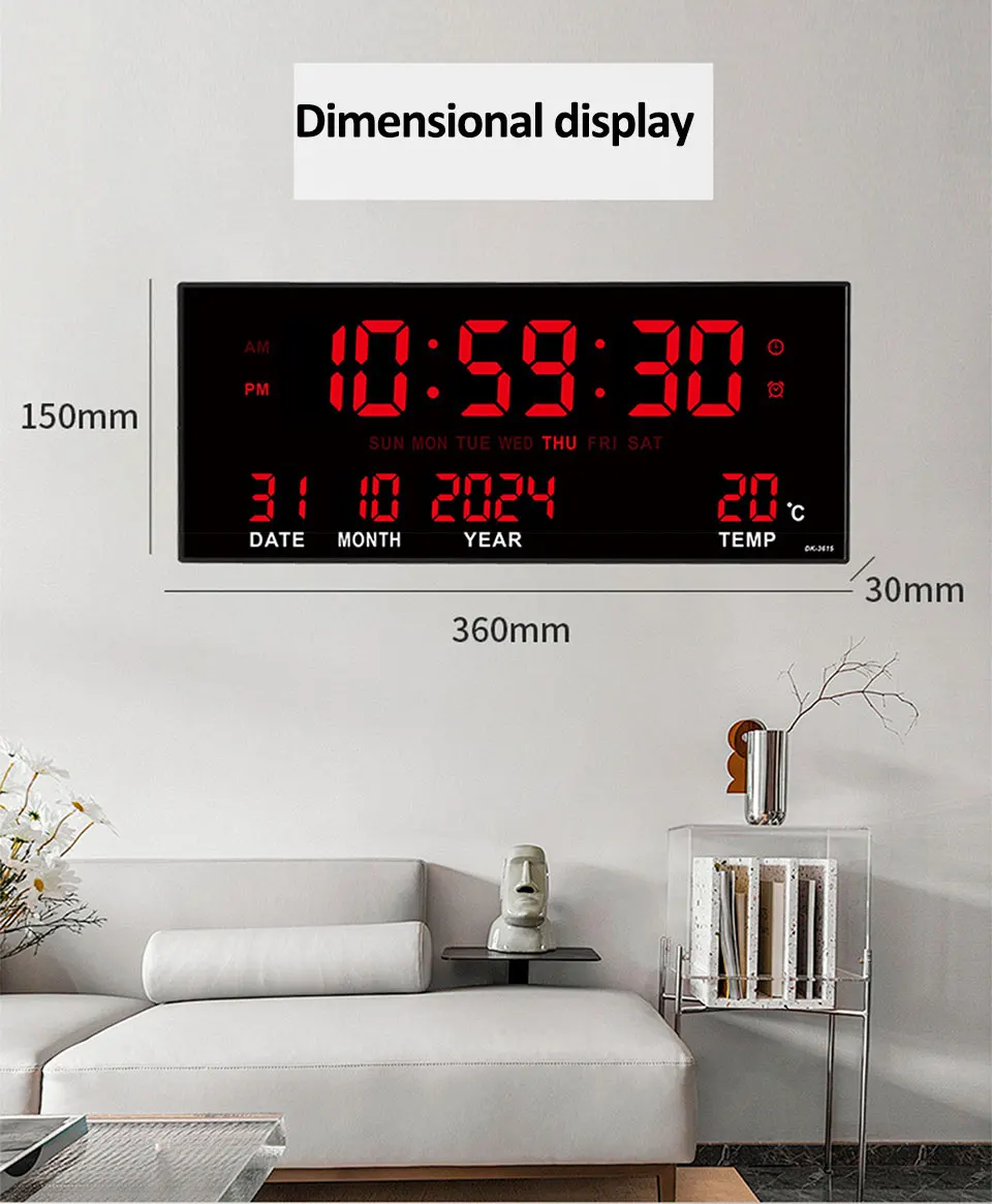 Digital Large Wall Clock Alarm Temperature Date Calendar Display 8 Sets of Alarm Clocks 14” Electronic LED Clock Plug in Use
