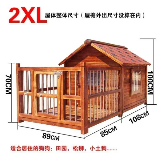 Dog House Outdoor Waterproof Solid Wood Dog Villa with Yard Outdoor Rainproof Type Four Seasons Universal Pet Kennel
