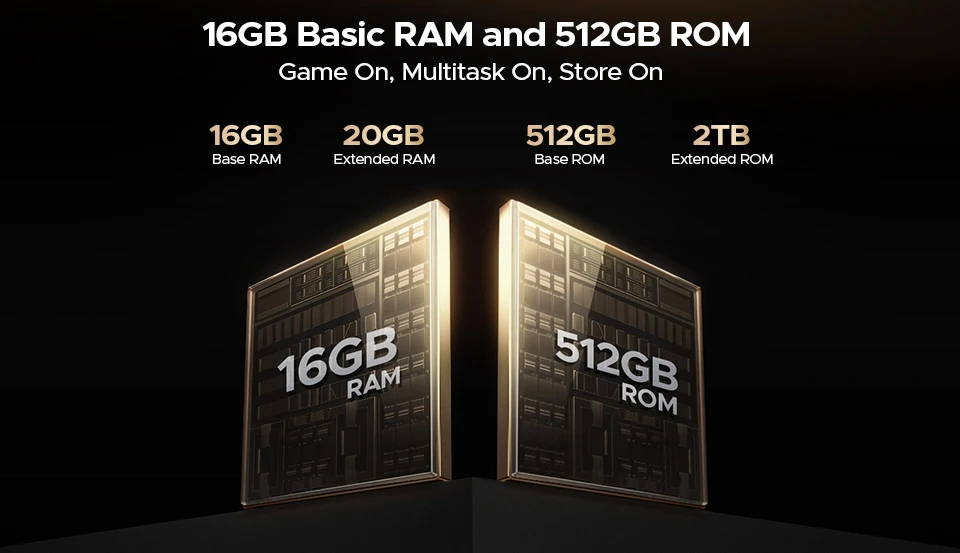 36GB RAM (16GB+Up to 20GB Extended RAM)+512GB ROM